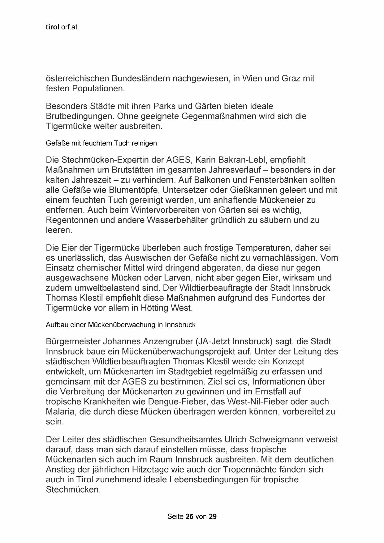 Mückenarten sich auch im Raum Innsbruck ausbreiten. Mit dem deutlichen