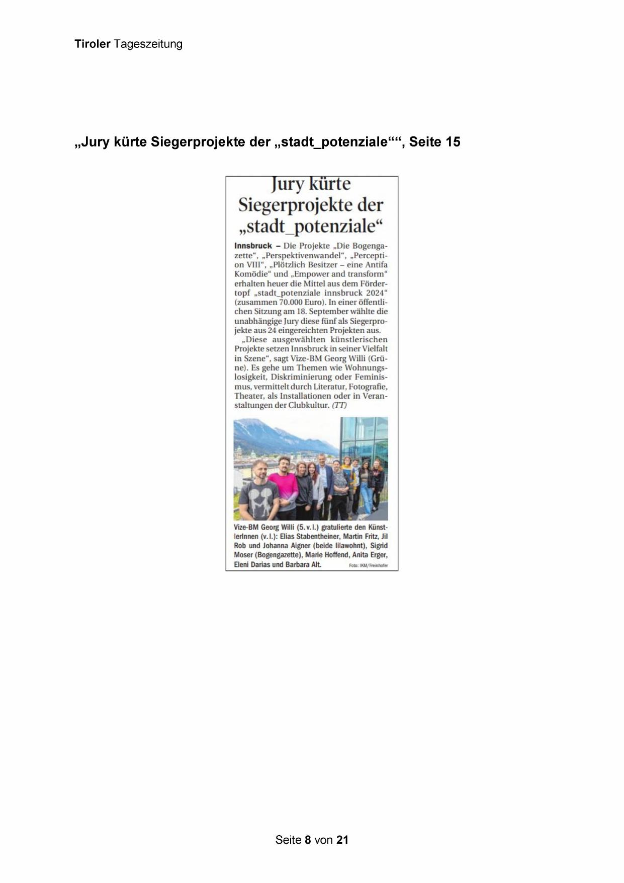 Innsbruck —- Die Projekte „Die Bogengazette“, „Perspektivenwandel“, „Perception VIII“, „Plötzlich Besitzer — eine Antifa