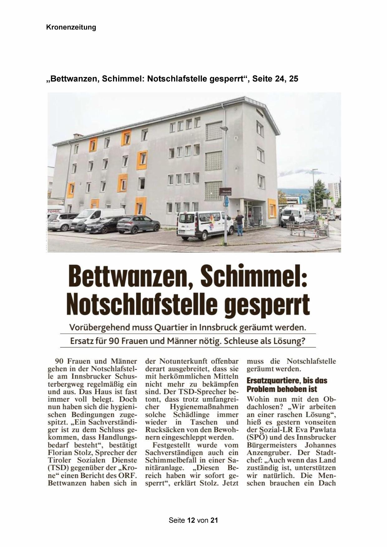 „Bettwanzen, Schimmel: Notschlafstelle gesperrt“, Seite 24, 25