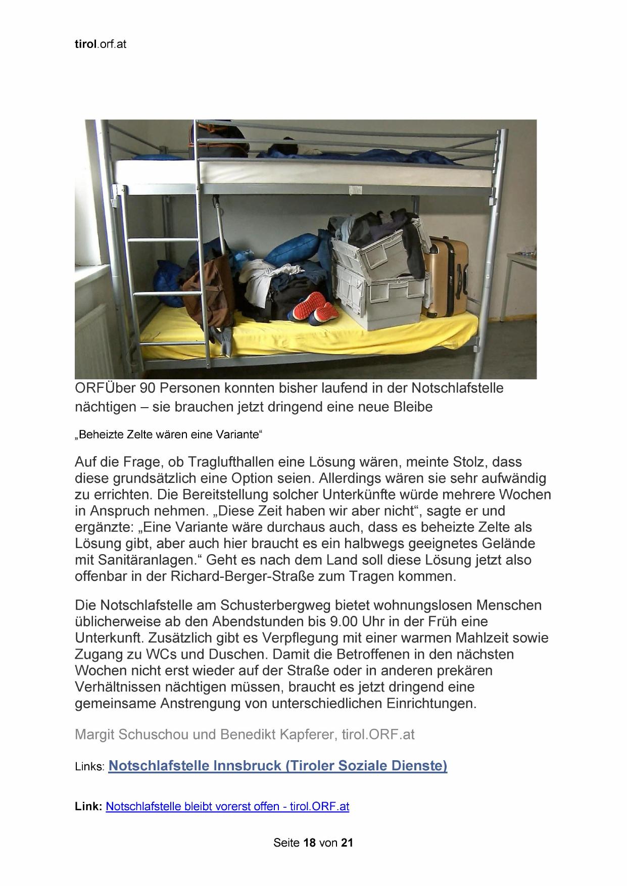 Links: Notschlafstelle Innsbruck (Tiroler Soziale Dienste)