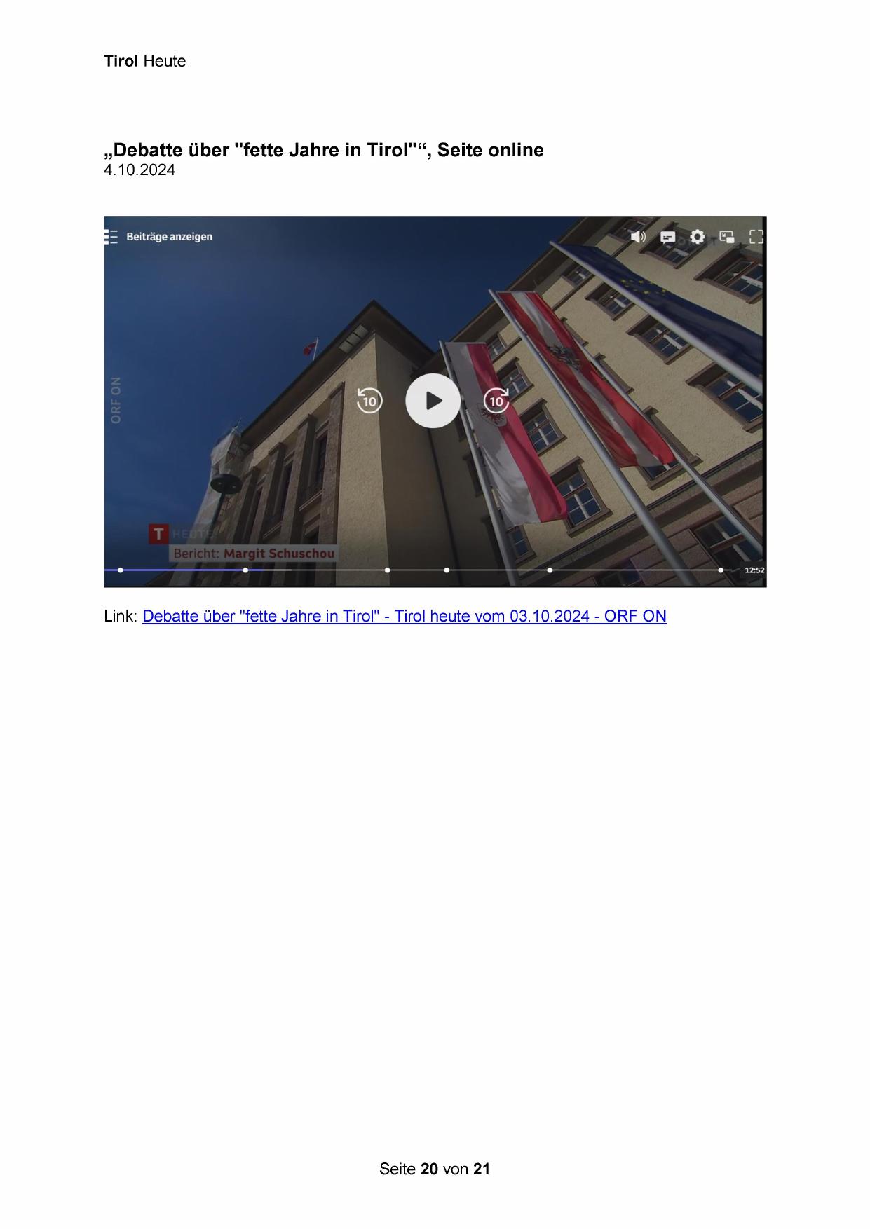 Link: Debatte über "fette Jahre in Tirol" - Tirol heute vom 03.10.2024 - ORF ON