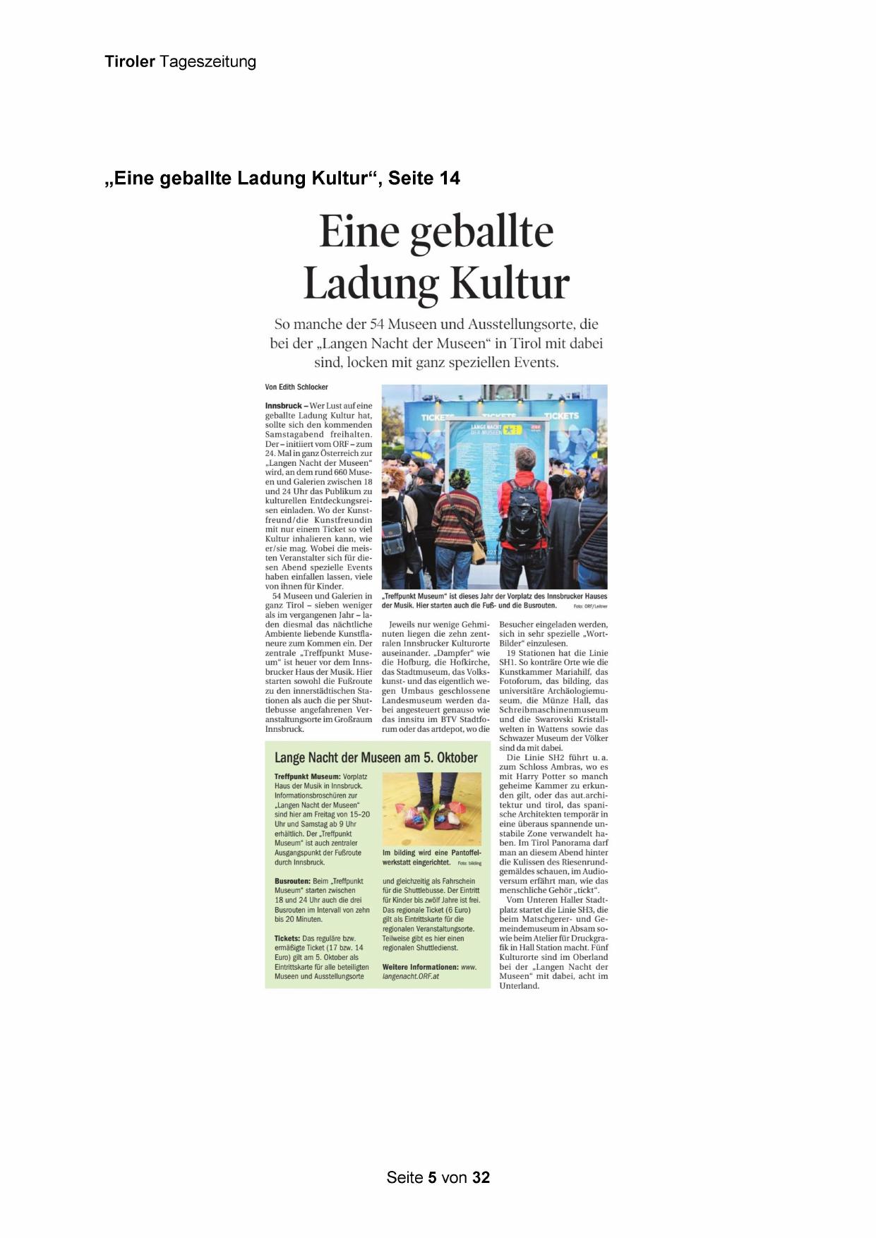 beim Matschgerer- und Gemeindemuseum in Absam sowie beim Atelier für Druckgrafik in Hall Station macht. Fünf