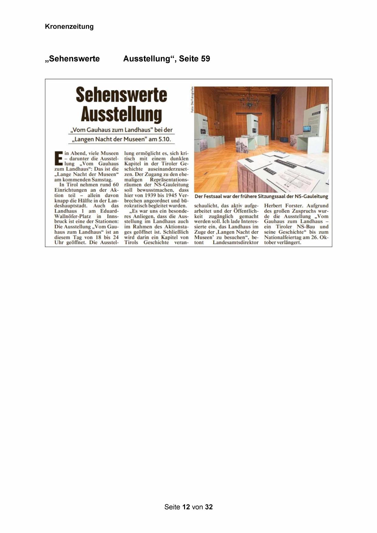 Kapitel in der Tiroler Geschichte auseinanderzusetzen. Der Zugang zu den ehemaligen _ KRepräsentationsräumen der NS-Gauleitung