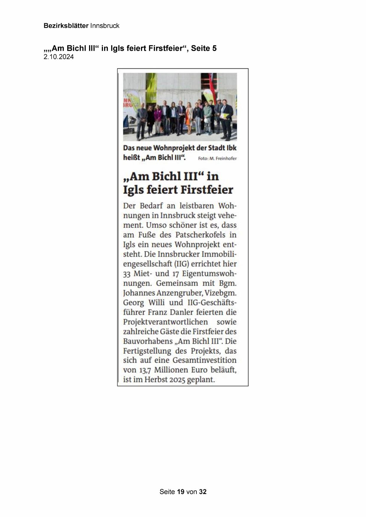 „„Am Bichl IlIl“ in Igls feiert Firstfeier‘“, Seite 5