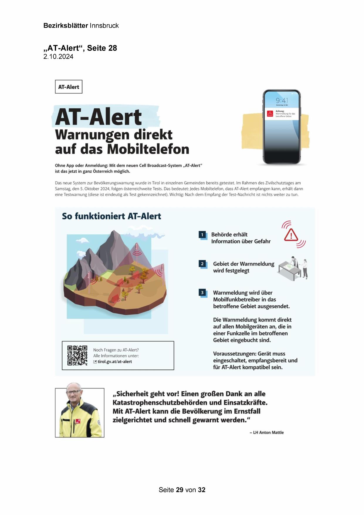 Mit AT-Alert kann die Bevölkerung im Ernstfall