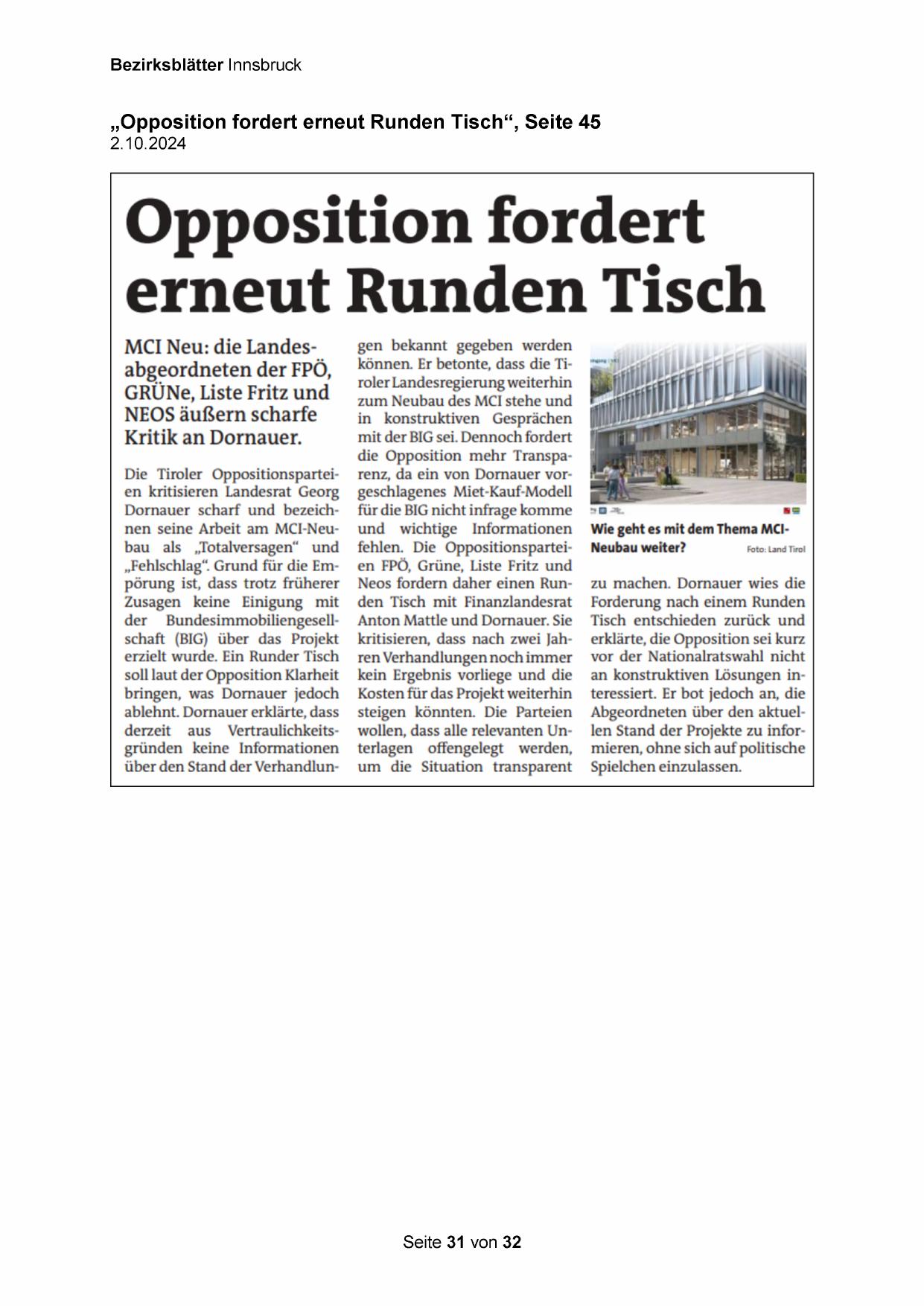 fehlen. Die Oppositionsparteien FPÖ, Grüne, Liste Fritz und