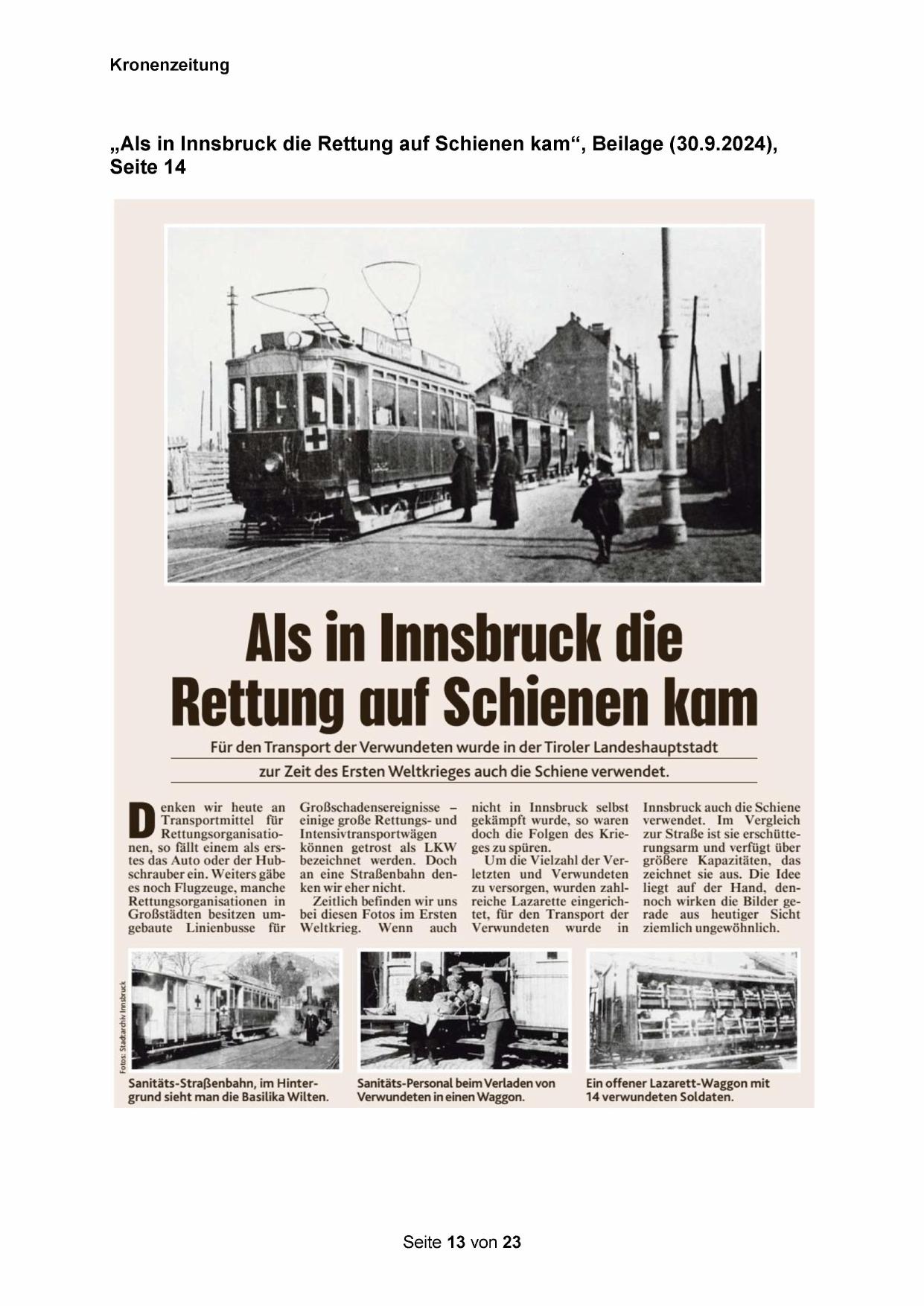 „Als in Innsbruck die Rettung auf Schienen kam“, Beilage (30.9.2024),
