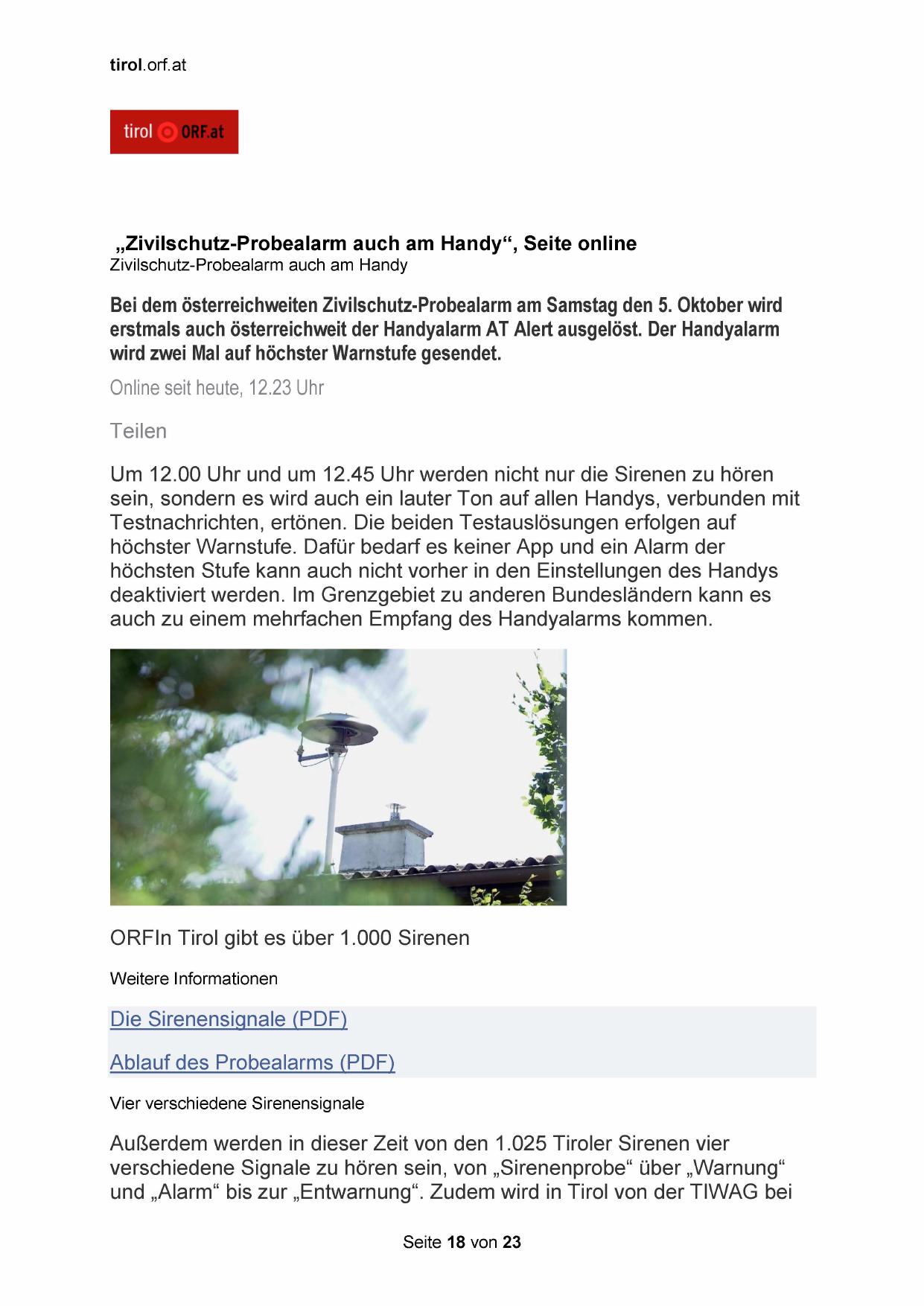 „Zivilschutz-Probealarm auch am Handy“, Seite online