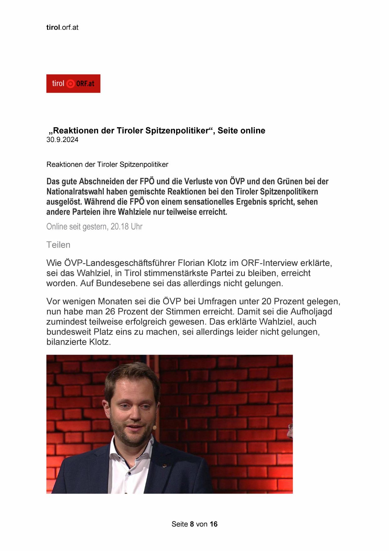 „Reaktionen der Tiroler Spitzenpolitiker“, Seite online