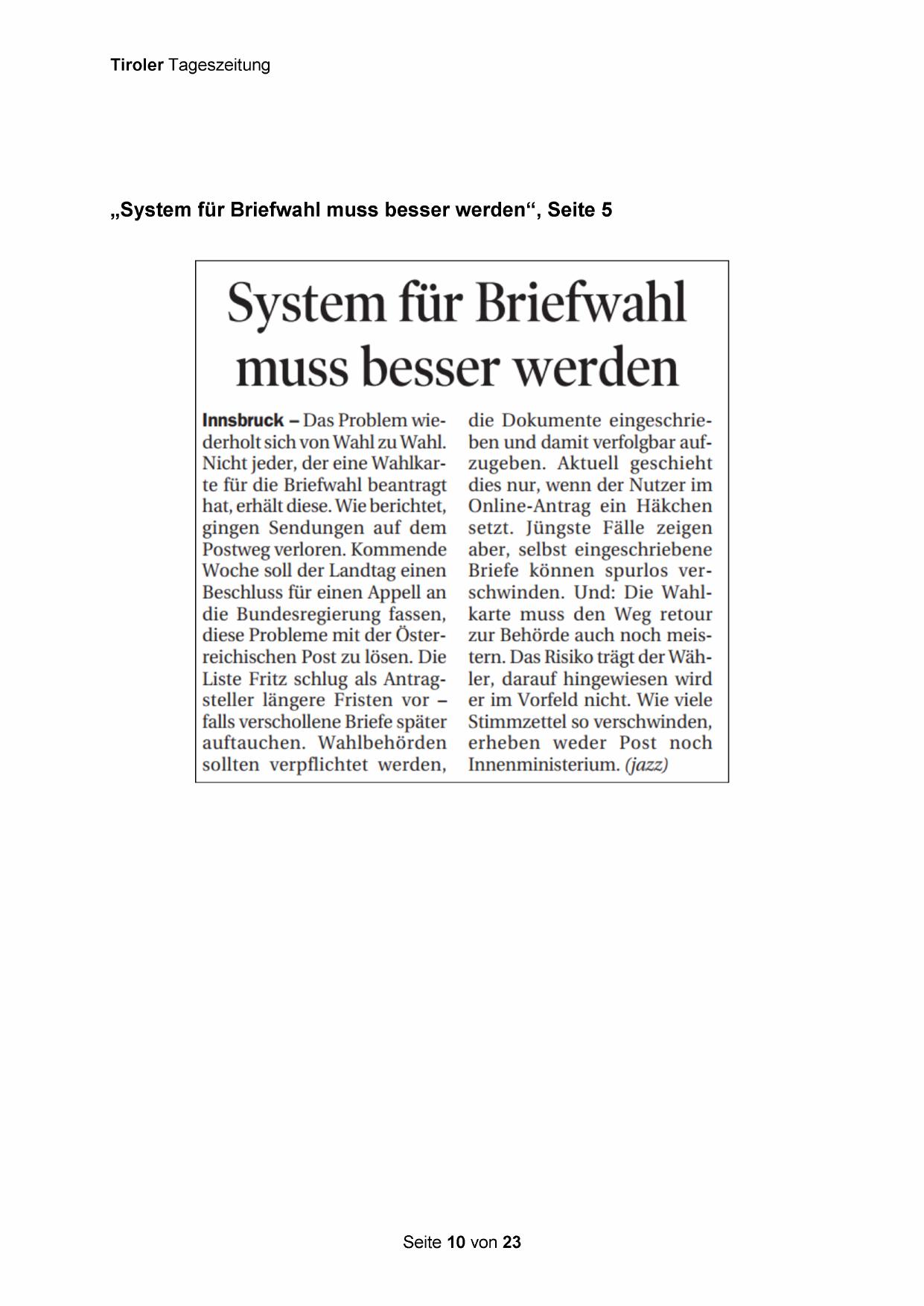 Liste Fritz schlug als Antragsteller längere Fristen vor -