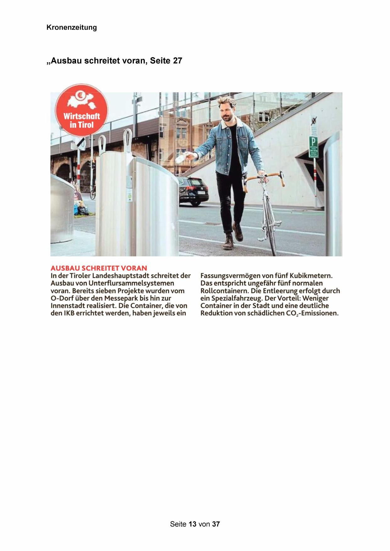 In der Tiroler Landeshauptstadt schreitet der Fassungsvermögen von fünf Kubikmetern.