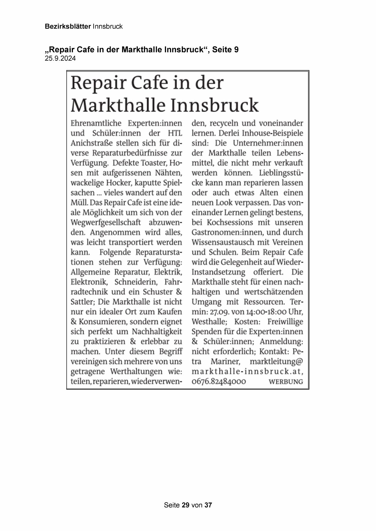 „Repair Cafe in der Markthalle Innsbruck“, Seite 9