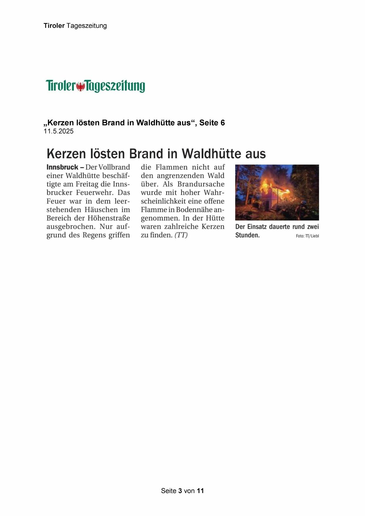 „Kerzen lösten Brand in Waldhütte aus“, Seite 6