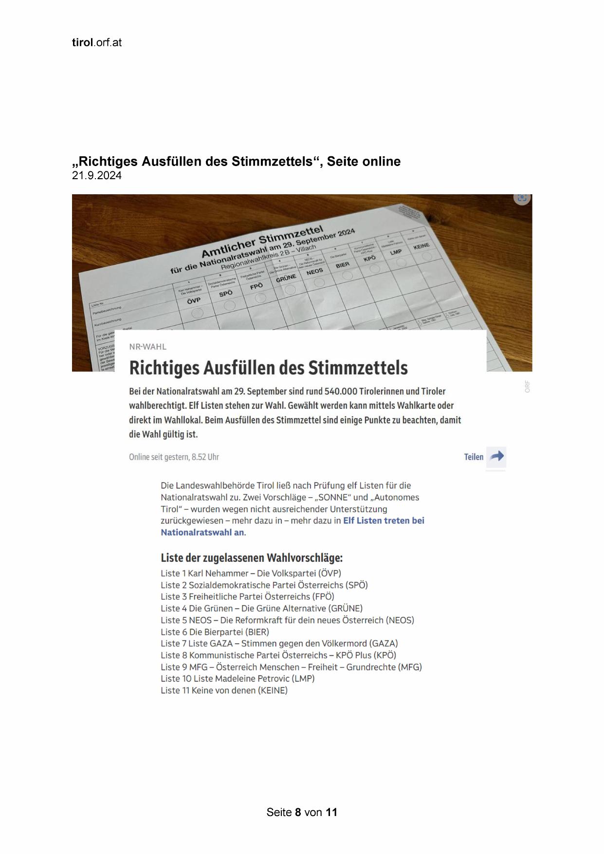 „Richtiges Ausfüllen des Stimmzettels“, Seite online