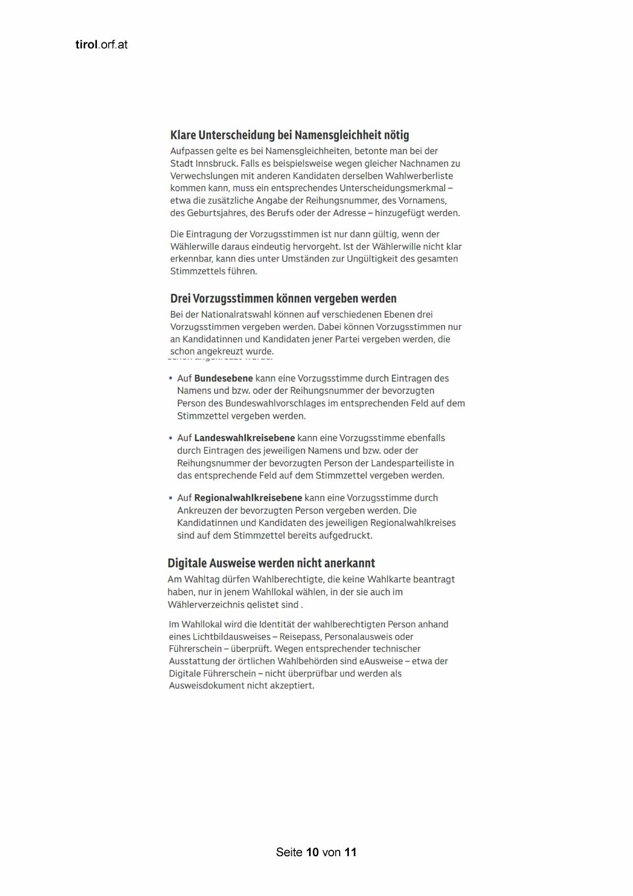Vorzugsstimmen vergeben werden. Dabei können Vorzugsstimmen nur