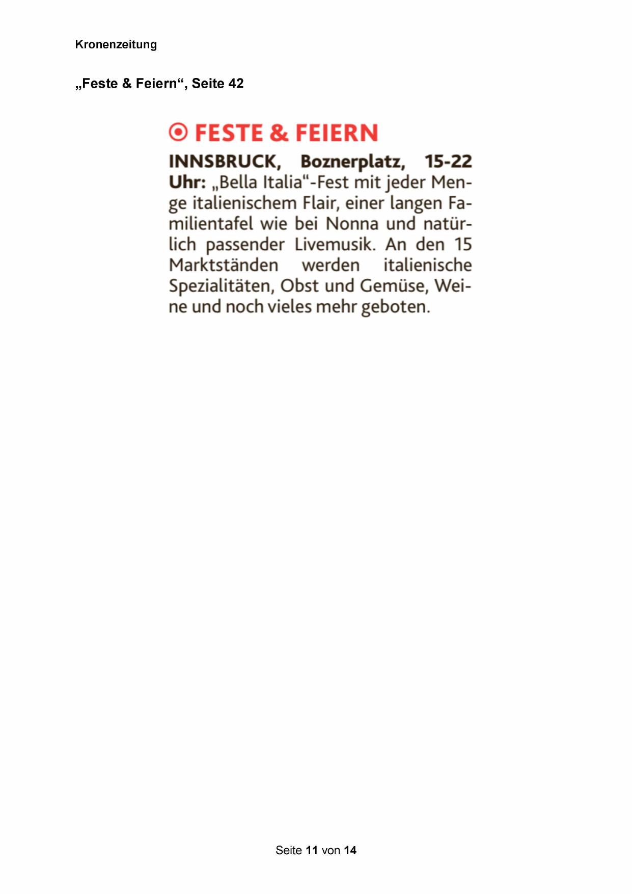 Uhr: „Bella Italia“-Fest mit jeder Menge italienischem Flair, einer langen Familientafel wie bei Nonna und natürlich passender Livemusik. An den 15