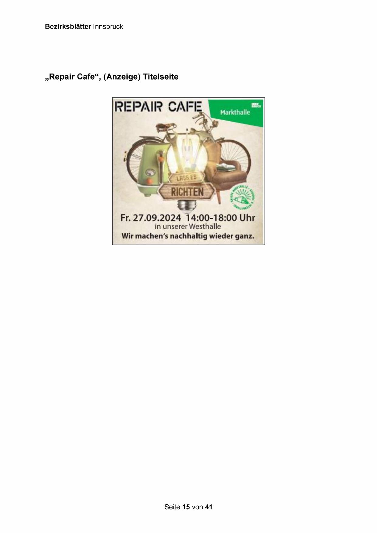 „Repair Cafe“, (Anzeige) Titelseite