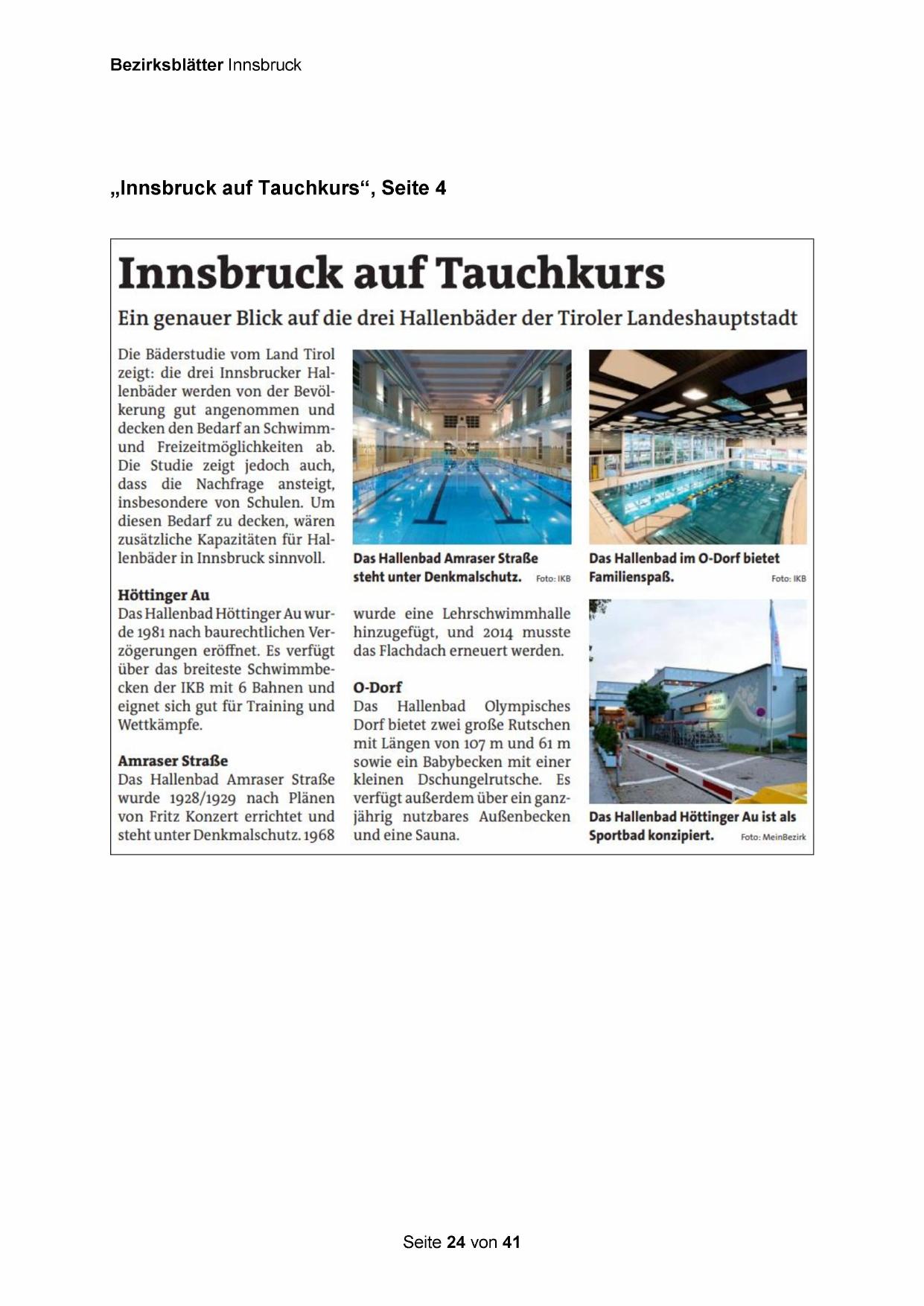 zusätzliche Kapazitäten für Hallenbäder in Innsbruck sinnvoll.