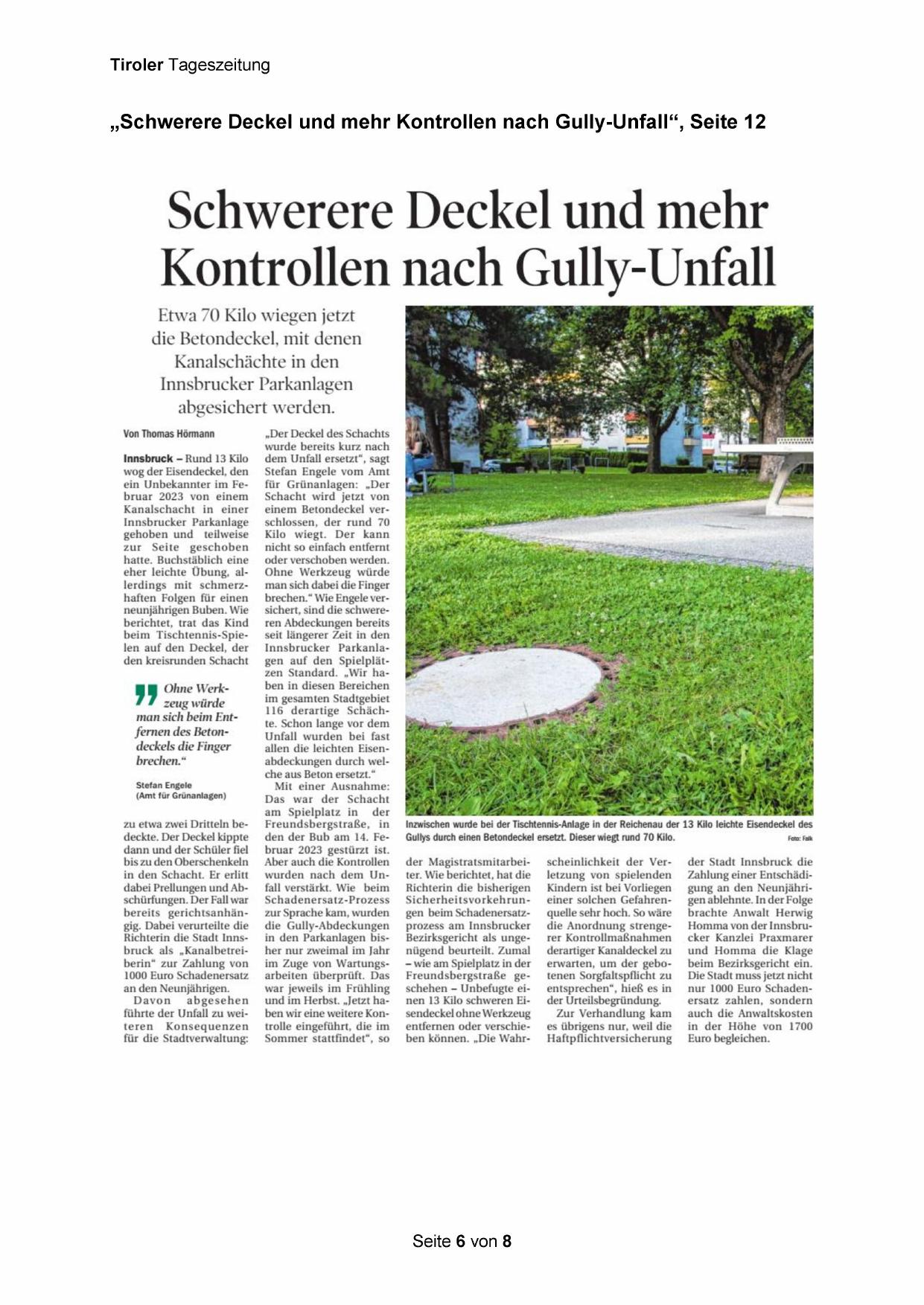 „Schwerere Deckel und mehr Kontrollen nach Gully-Unfall“, Seite 12