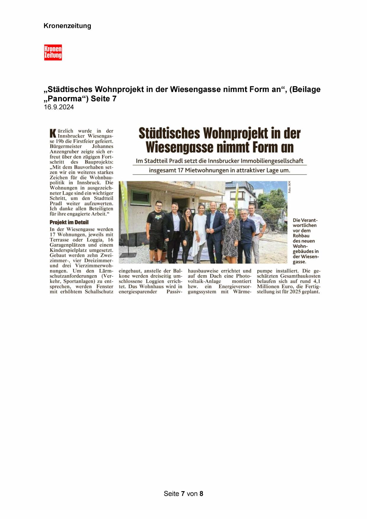 „Städtisches Wohnprojekt in der Wiesengasse nimmt Form an“, (Beilage