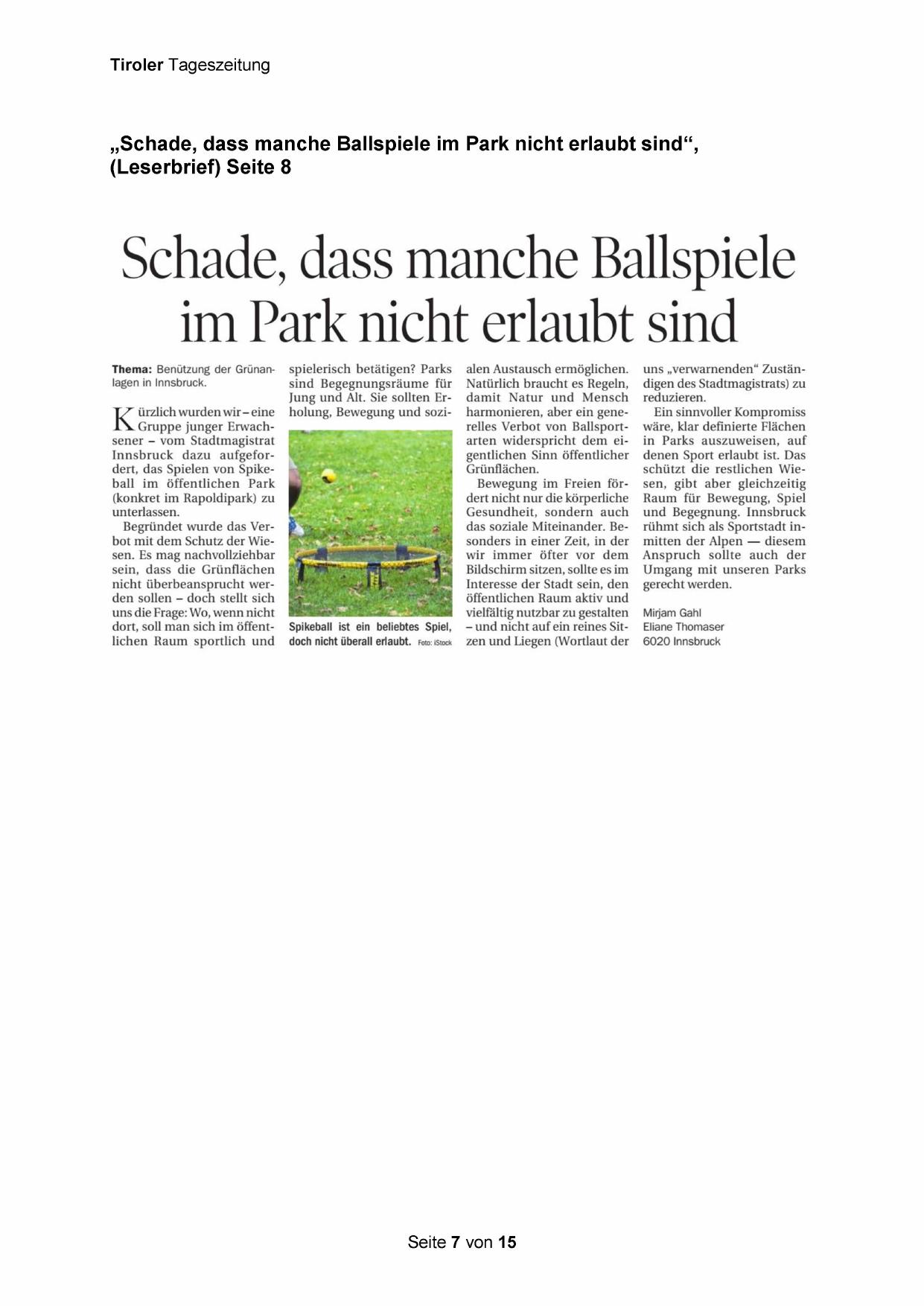 Thema: Benützung der Grünanlagen in Innsbruck.