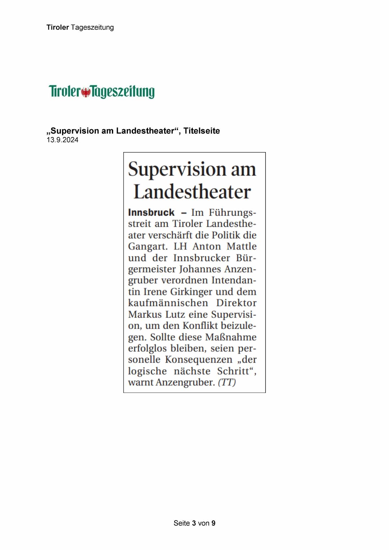 Innsbruck - Im Führungsstreit am Tiroler Landestheater verschärft die Politik die