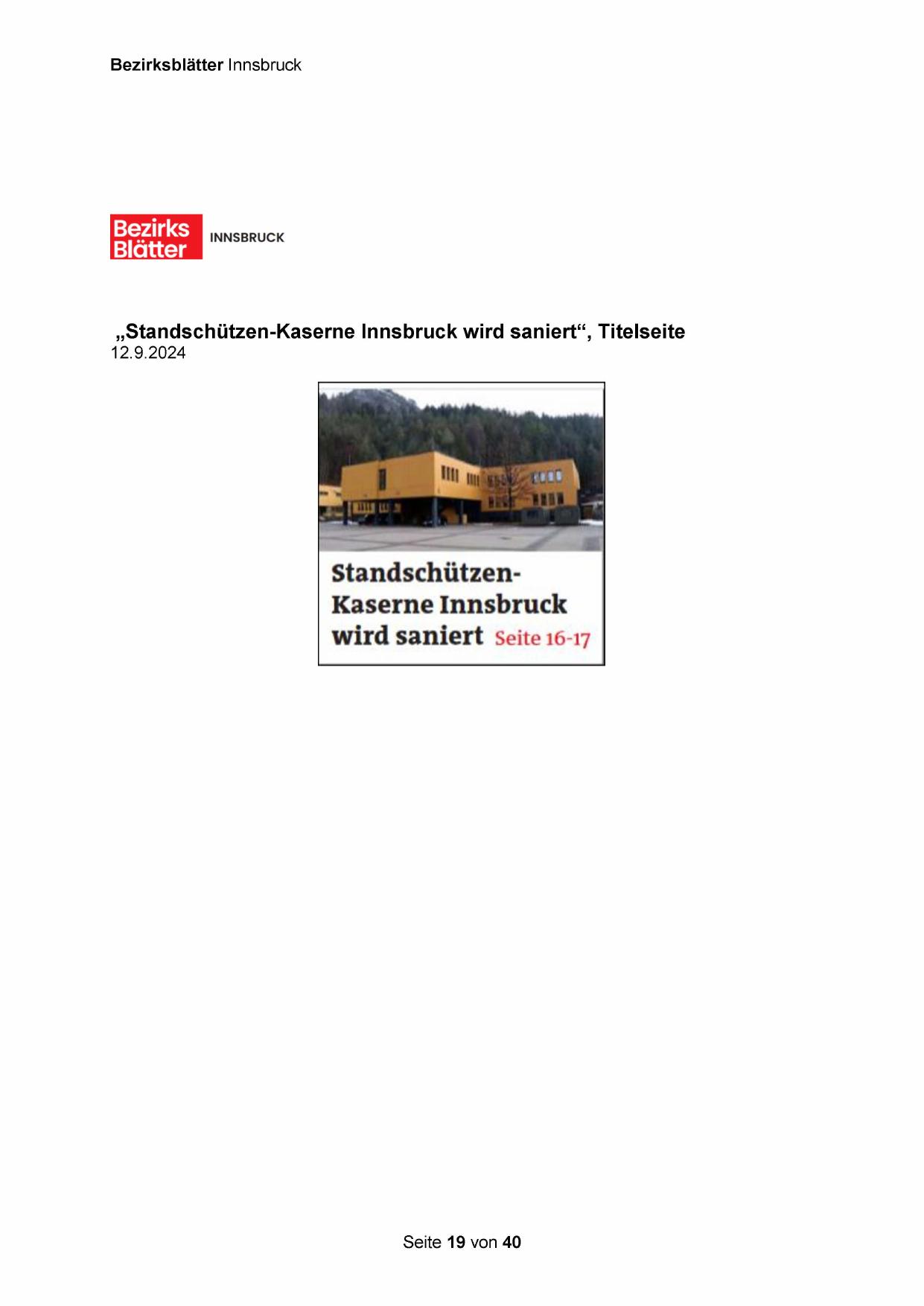 „Standschützen-Kaserne Innsbruck wird saniert‘“, Titelseite