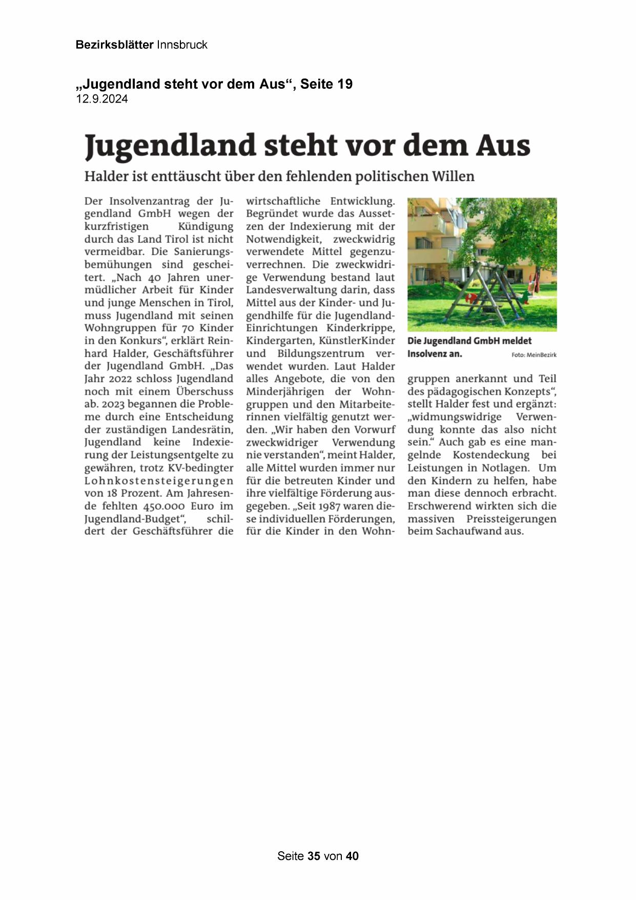 Der Insolvenzantrag der Jugendland GmbH wegen der