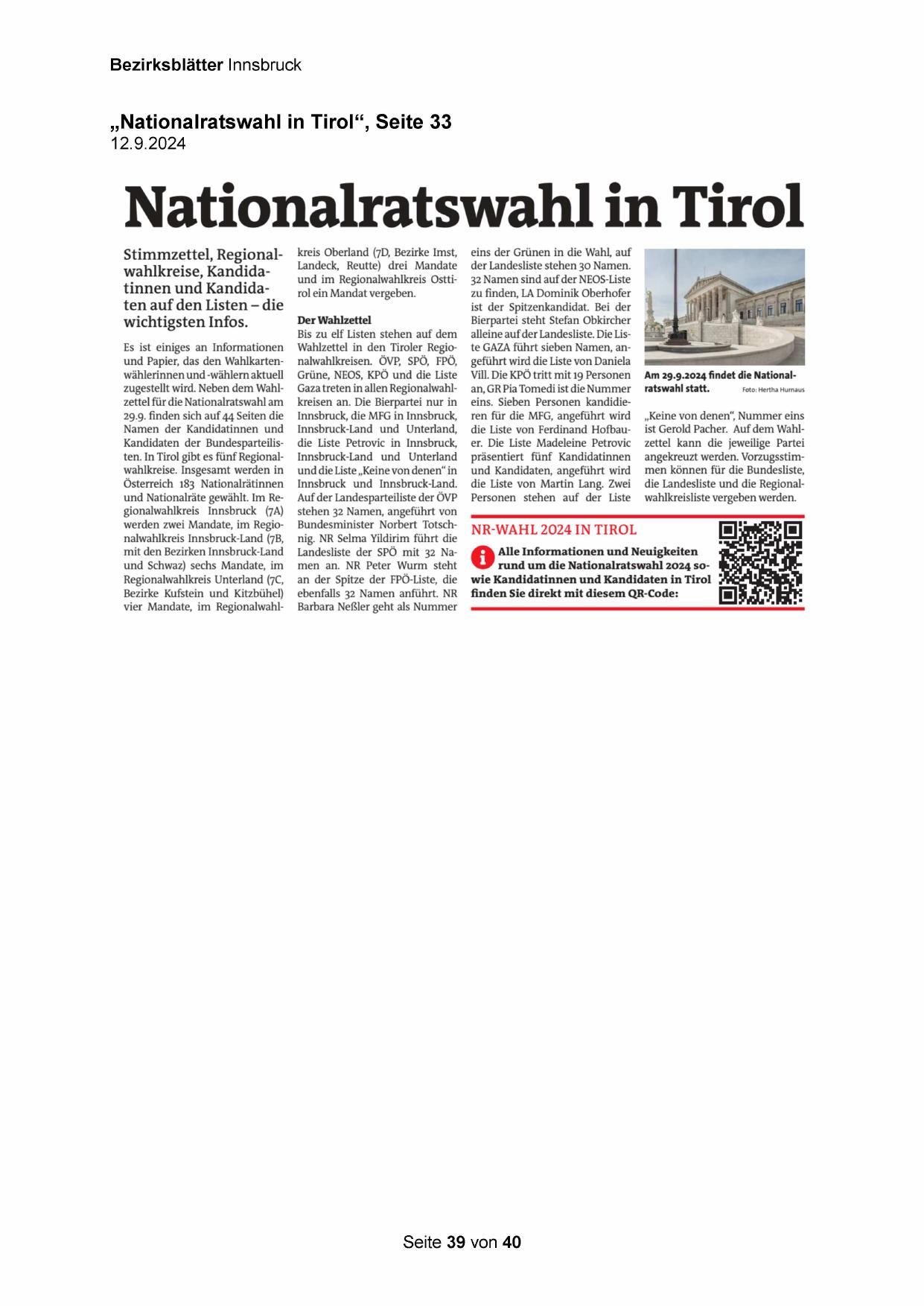 rund um die Nationalratswahl 2024 sowie Kandidatinnen und Kandidaten in Tirol