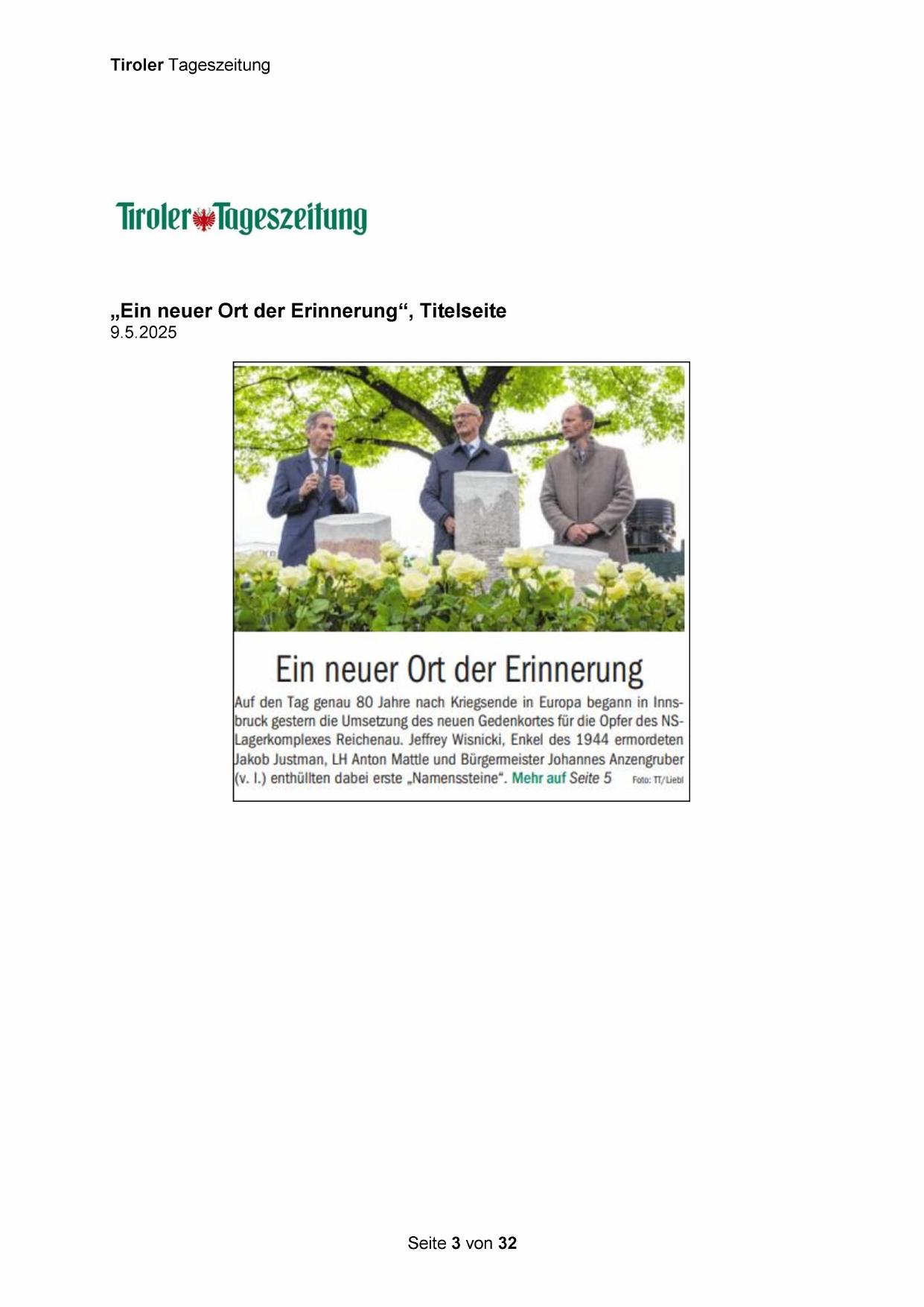 Auf den Tag genau 80 Jahre nach Kriegsende in Europa begann in Innsbruck gestern die Umsetzung des neuen Gedenkortes für die Opfer des NS-