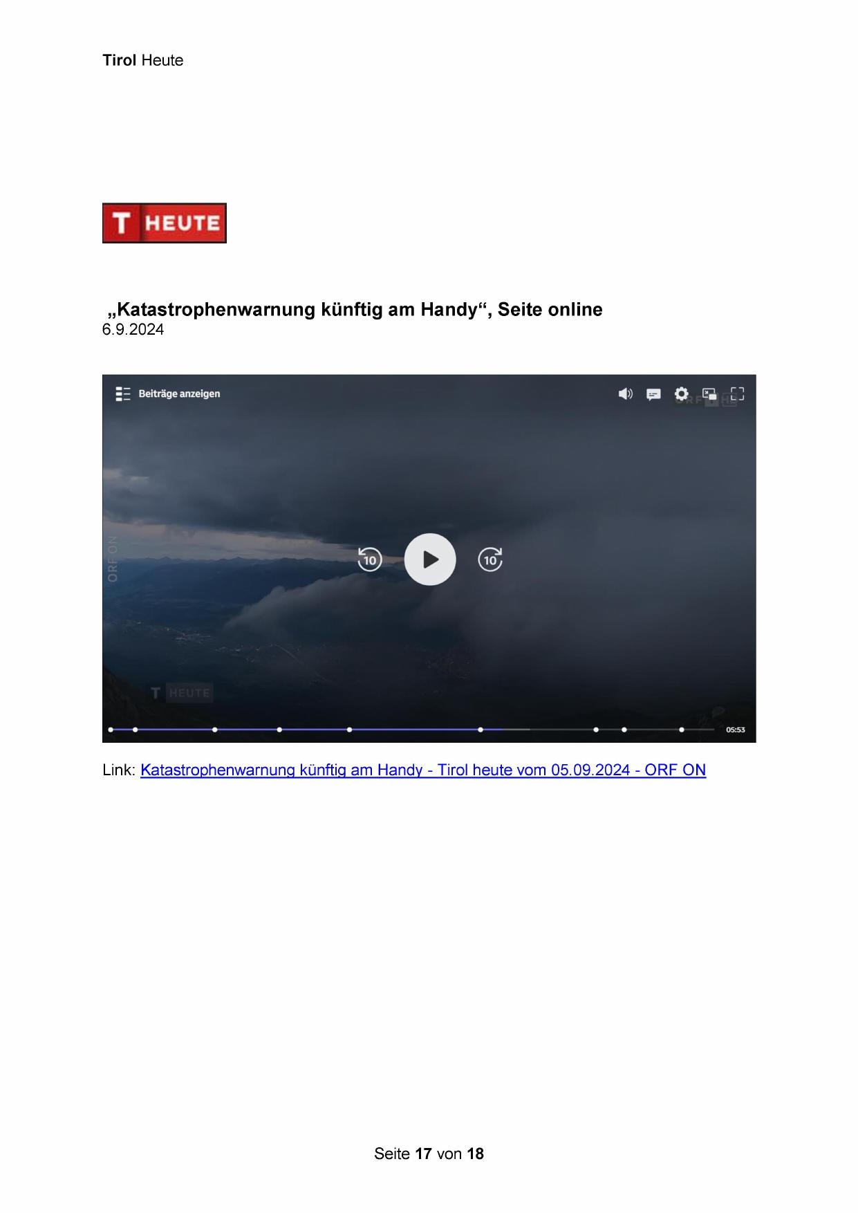 Link: Katastrophenwarnung künftig am Handy - Tirol heute vom 05.09.2024 - ORF ON