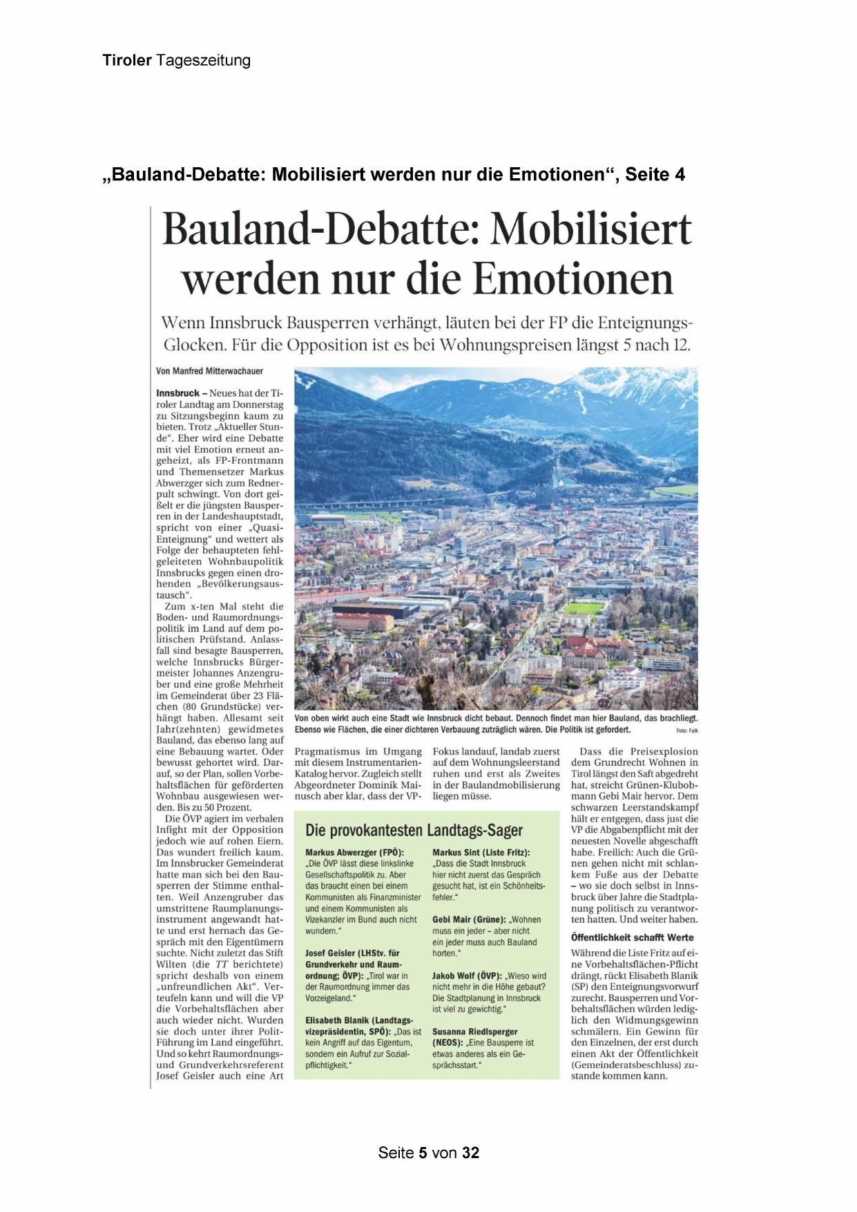 Grundverkehr und Raumordnung; ÖVP): „Tirol war in