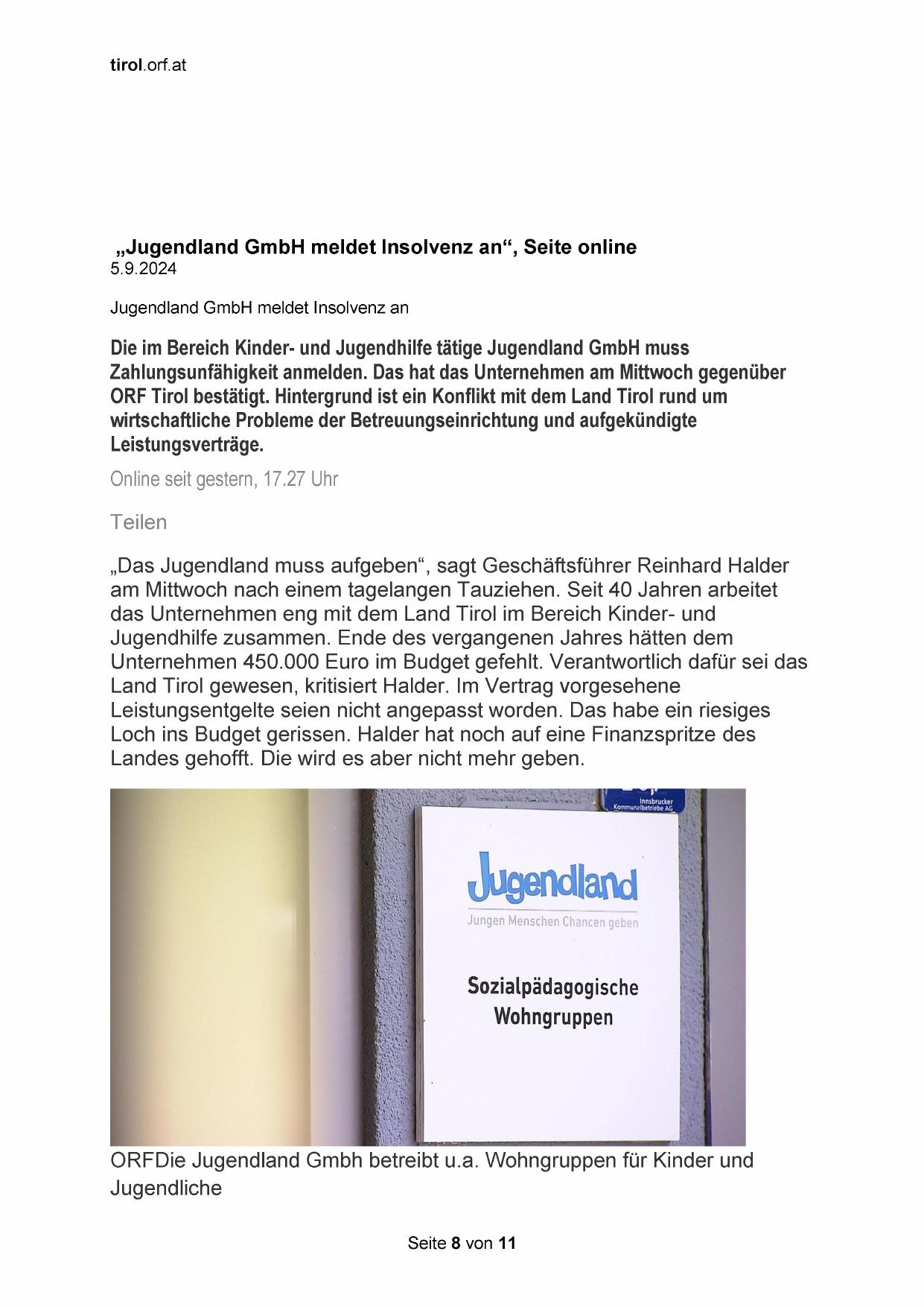 „Jugendland GmbH meldet Insolvenz an“, Seite online