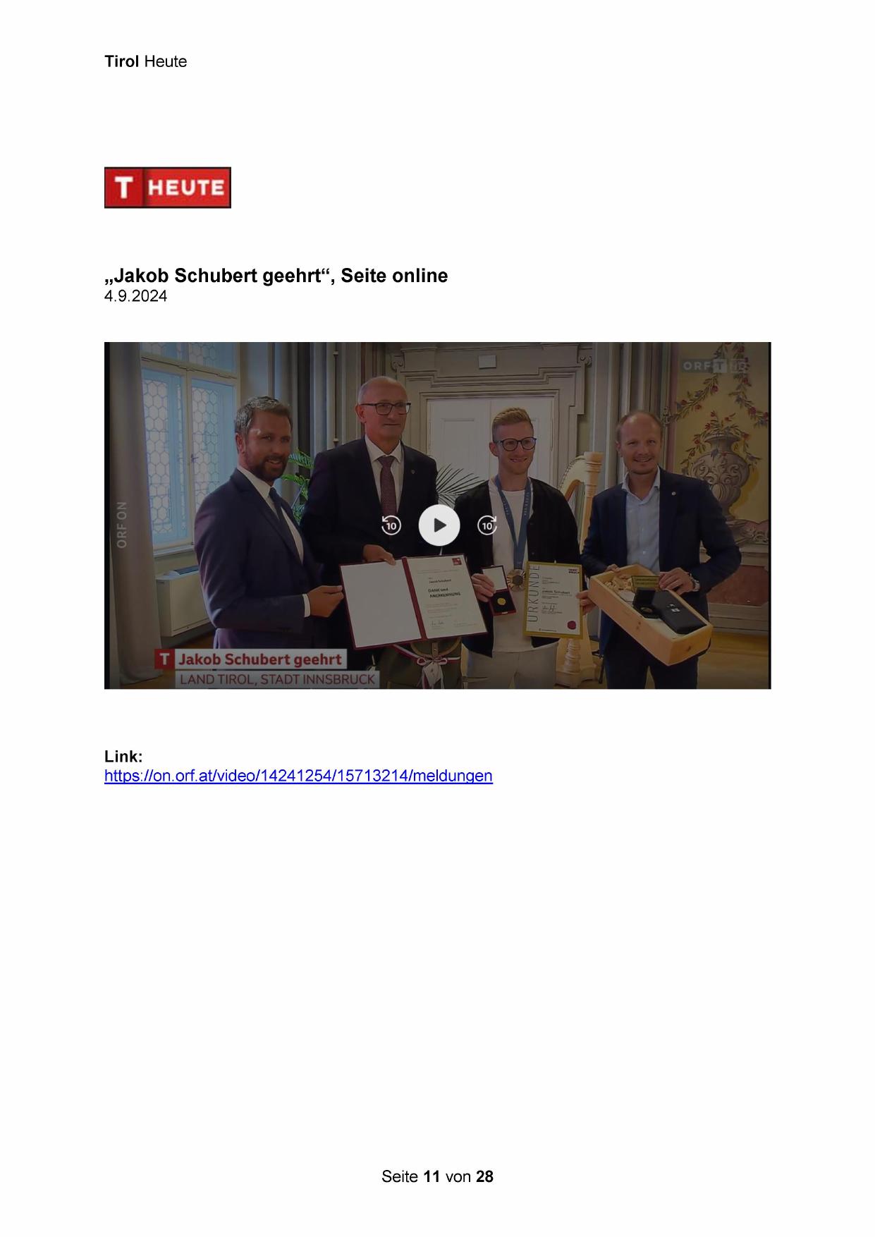 „Jakob Schubert geehrt“, Seite online