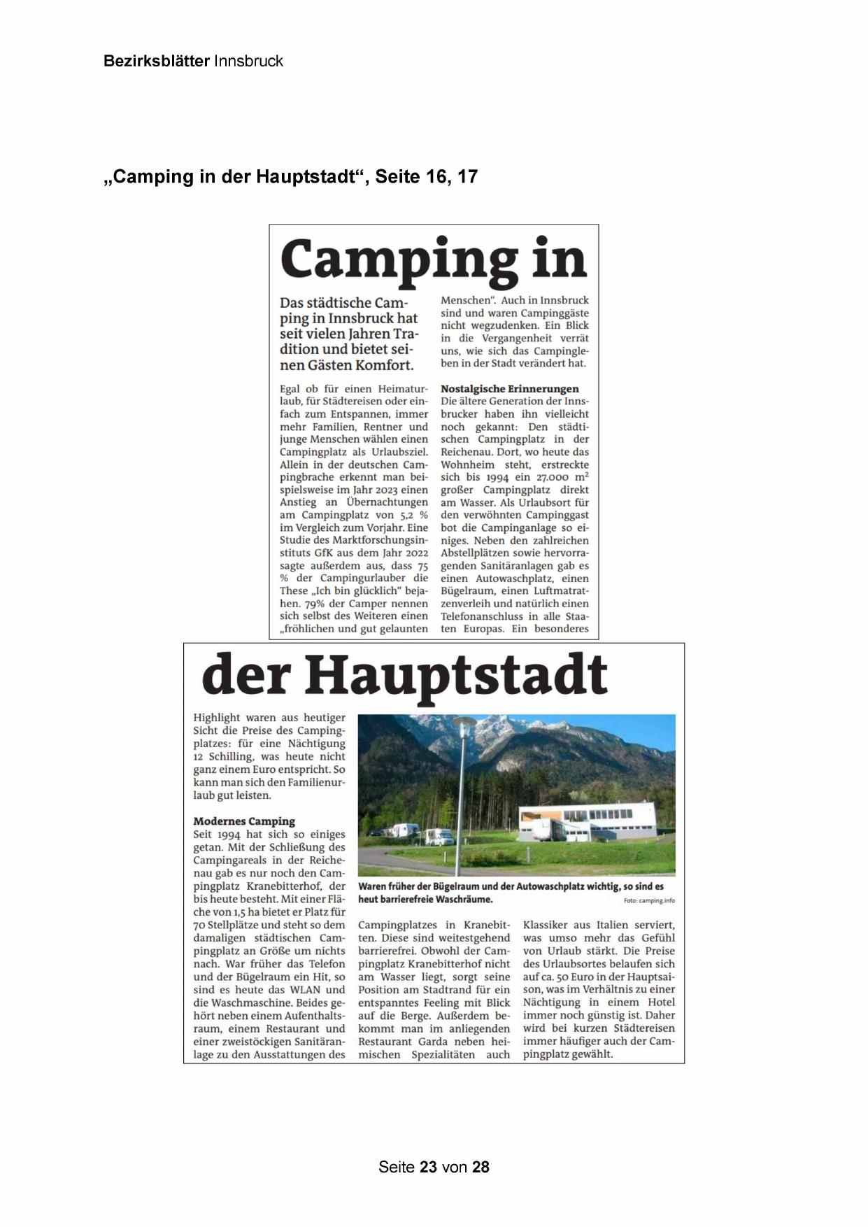 Campingplatzes in Kranebitten. Diese sind weitestgehend