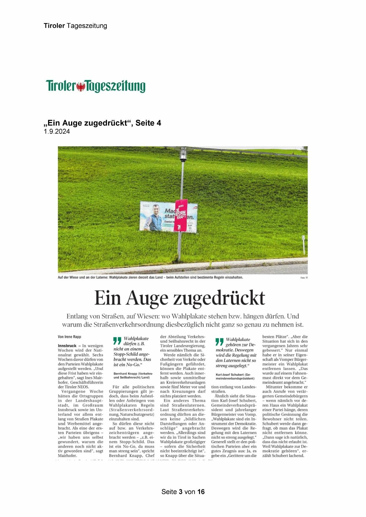 Wochen davor dürfen von bracht werden. Das _ cherheit von Verkehr oder den Laternen nicht so SCchaft als Vomper Bürgerden Parteien Wahlplakate ist ein No-Go.“ Fußgängern gefährdet, streng ausgelegt.“ meister ein Wahlplakat