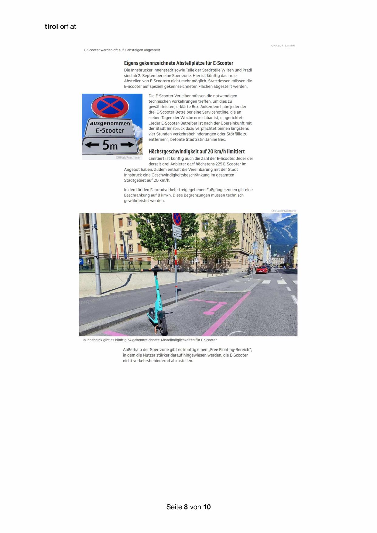 In Innsbruck gibt es künftig 34 gekennzeichnete Abstellmöglichkeiten für E-Scooter