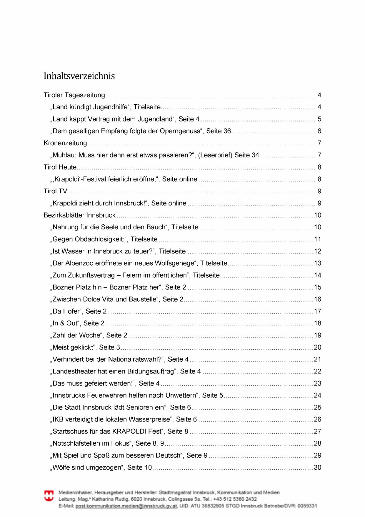 FPYY Medieninhaber, Herausgeber und Hersteller: Stadtmagistrat Innsbruck, Kommunikation und Medien