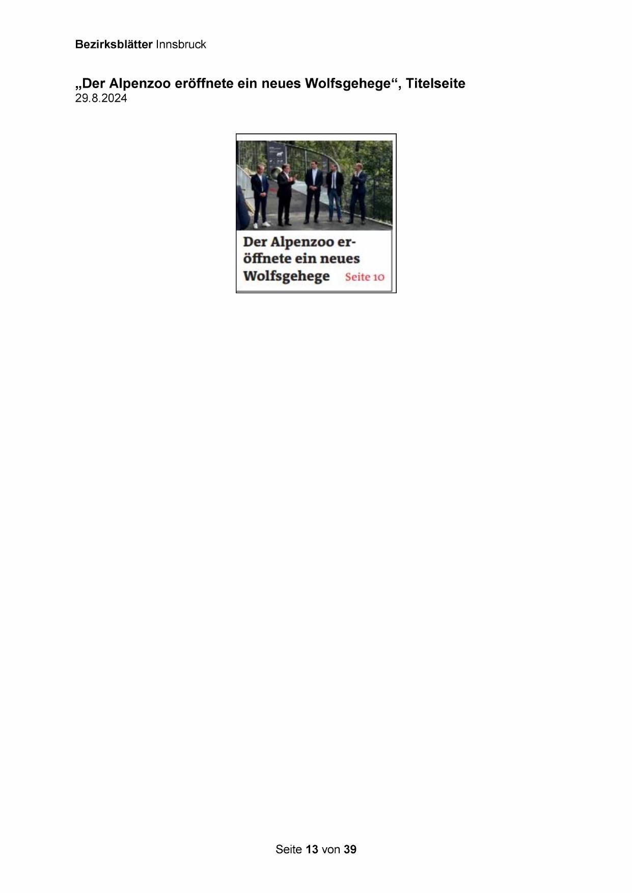„Der Alpenzoo eröffnete ein neues Wolfsgehege“, Titelseite