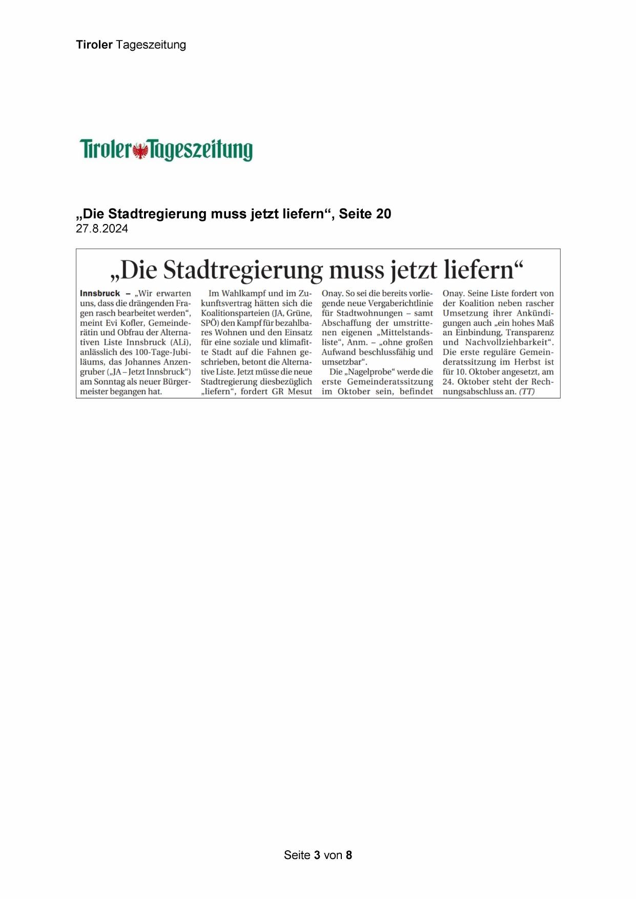 anlässlich des 100-Tage-Jubiläums, das Johannes Anzengruber („JA — Jetzt Innsbruck“)