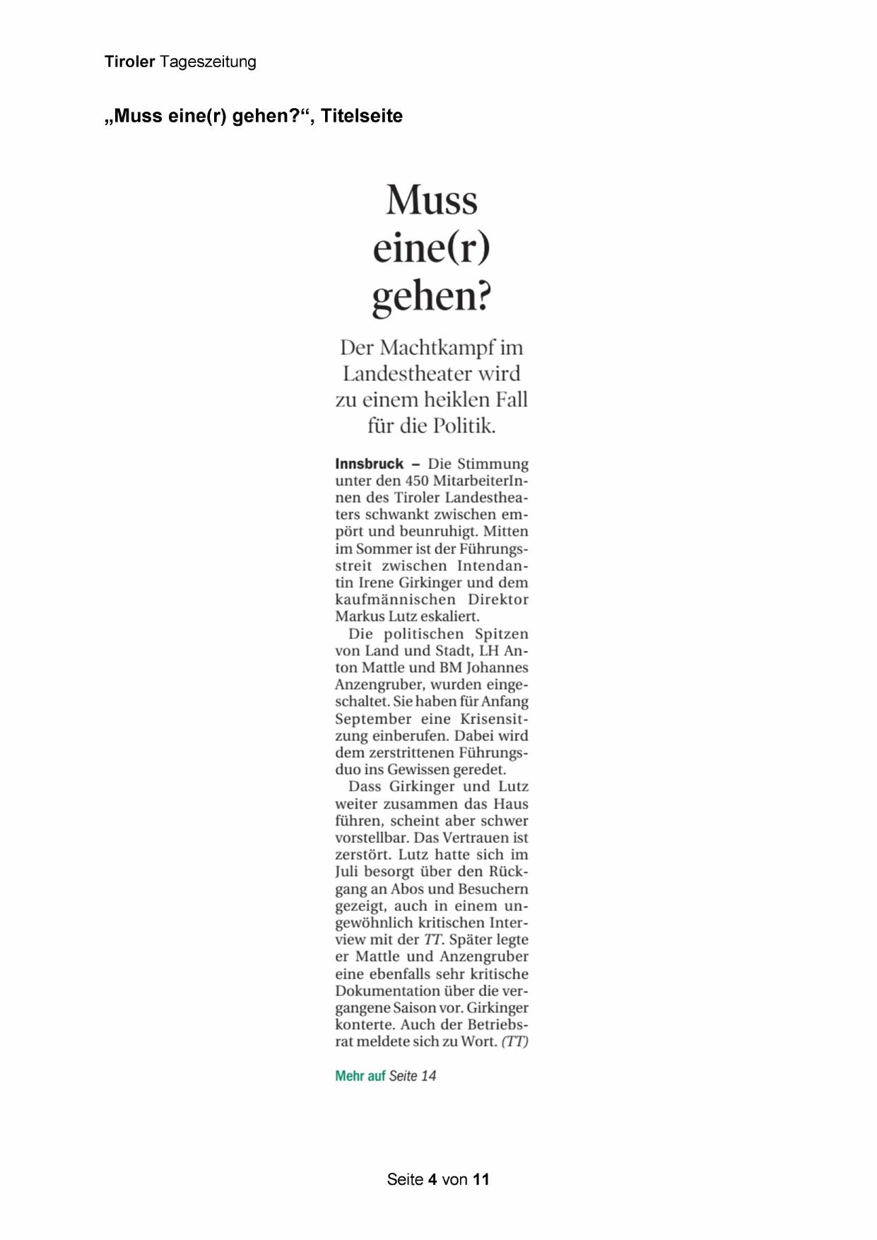 unter den 450 MitarbeiterInnen des Tiroler Landestheaters schwankt zwischen empört und beunruhigt. Mitten