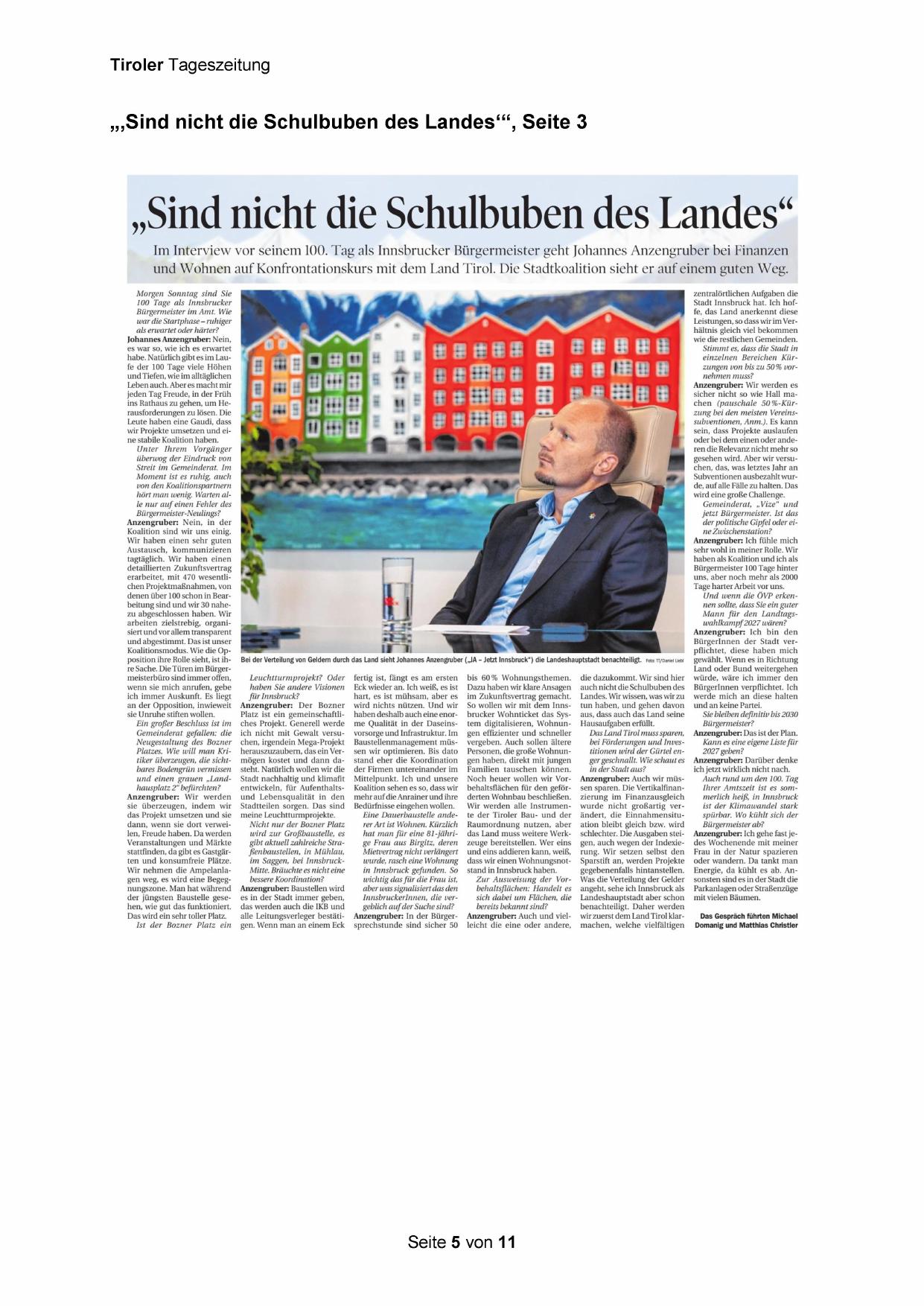 und Wohnen auf Konfrontationskurs mit dem Land Tirol. Die Stadtkoalition sieht er auf einem guten Weg.