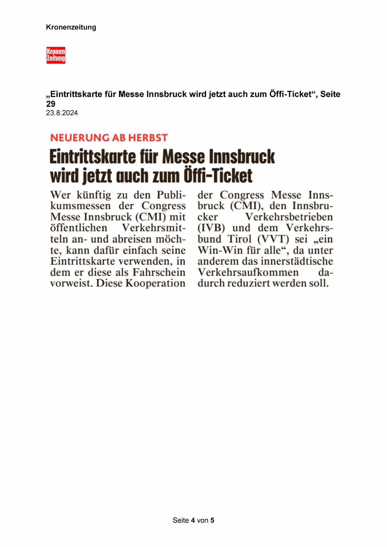„Eintrittskarte für Messe Innsbruck wird jetzt auch zum Öffi-Ticket“, Seite