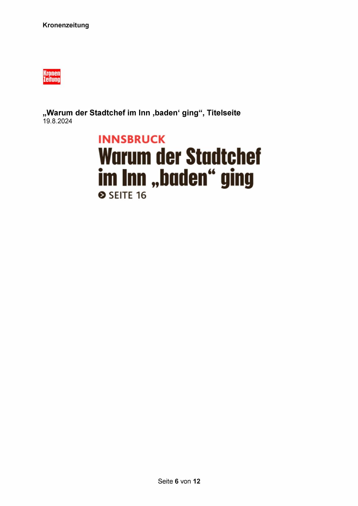 „Warum der Stadtchef im Inn ‚baden‘ ging“, Titelseite
