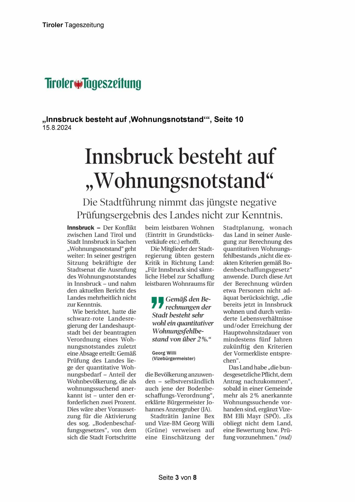 „Innsbruck besteht auf ‚Wohnungsnotstand“‘“, Seite 10