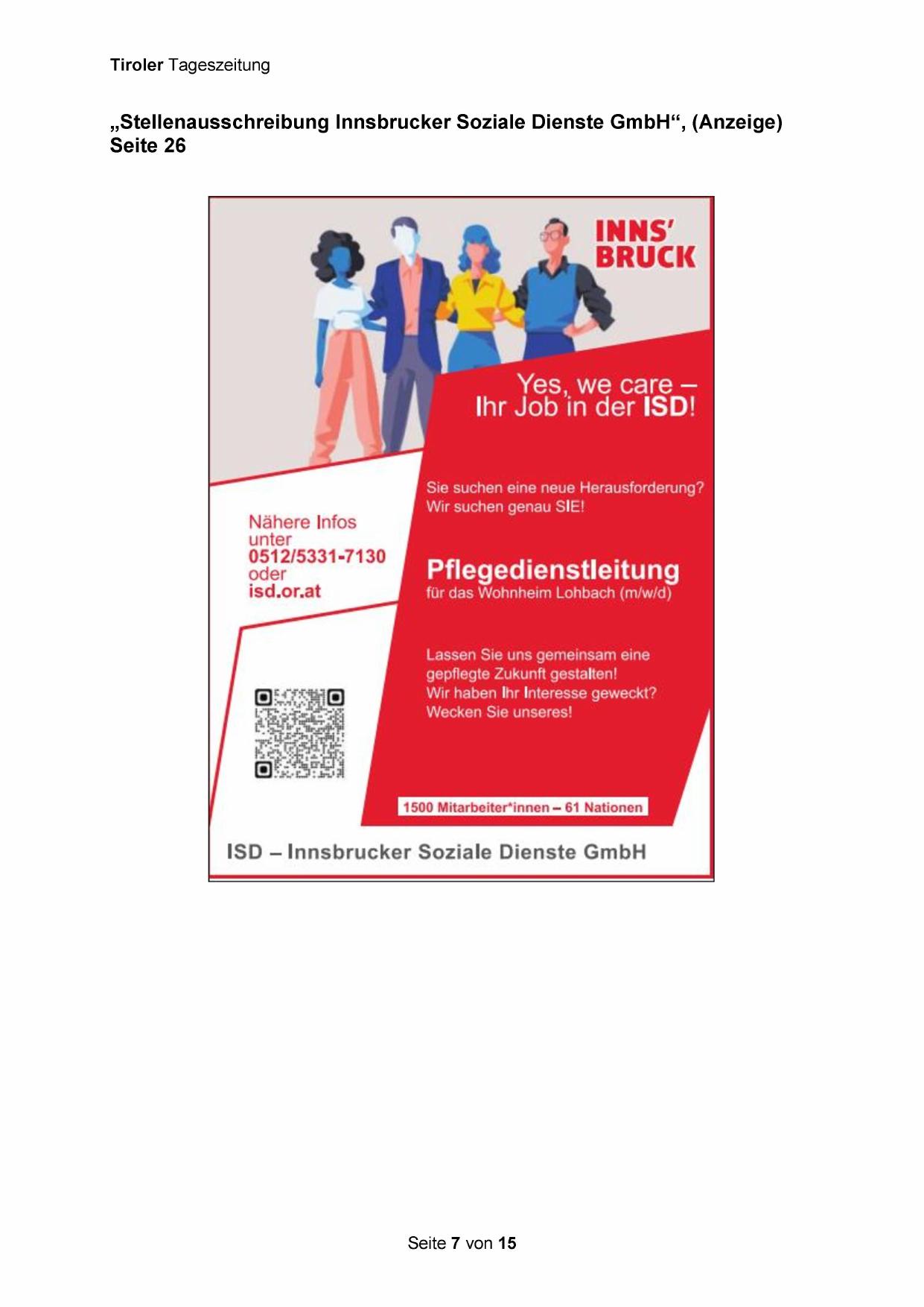 „Stellenausschreibung Innsbrucker Soziale Dienste GmbH“, (Anzeige)