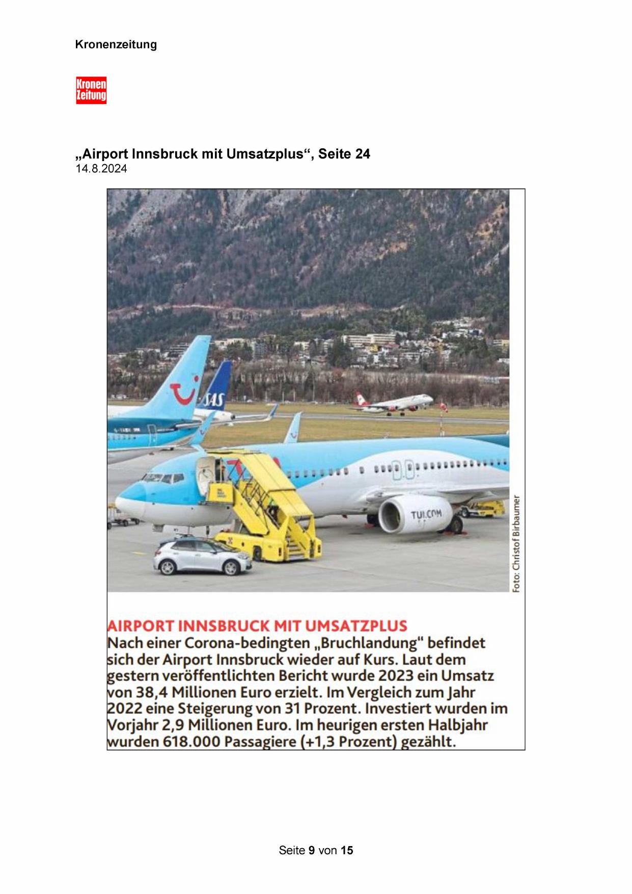 „Airport Innsbruck mit Umsatzplus“, Seite 24