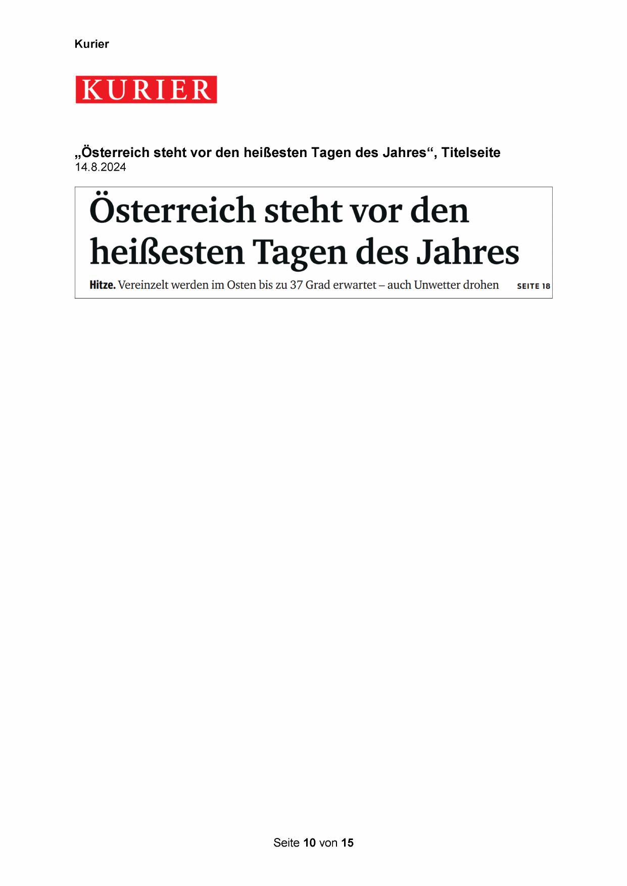 „Österreich steht vor den heißesten Tagen des Jahres“, Titelseite