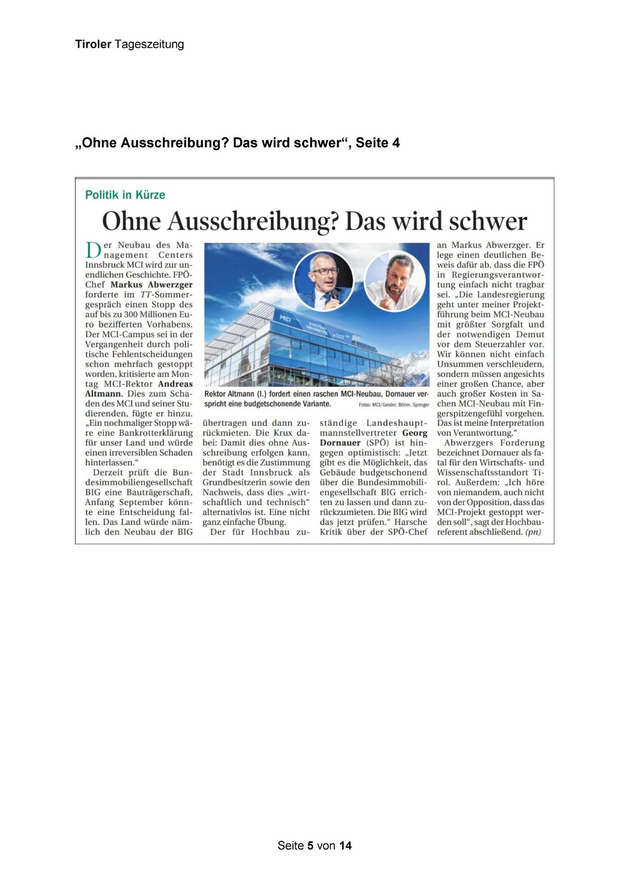 Altmann. Dies zum Schaden des MCI und seiner Studierenden, fügte er hinzu.