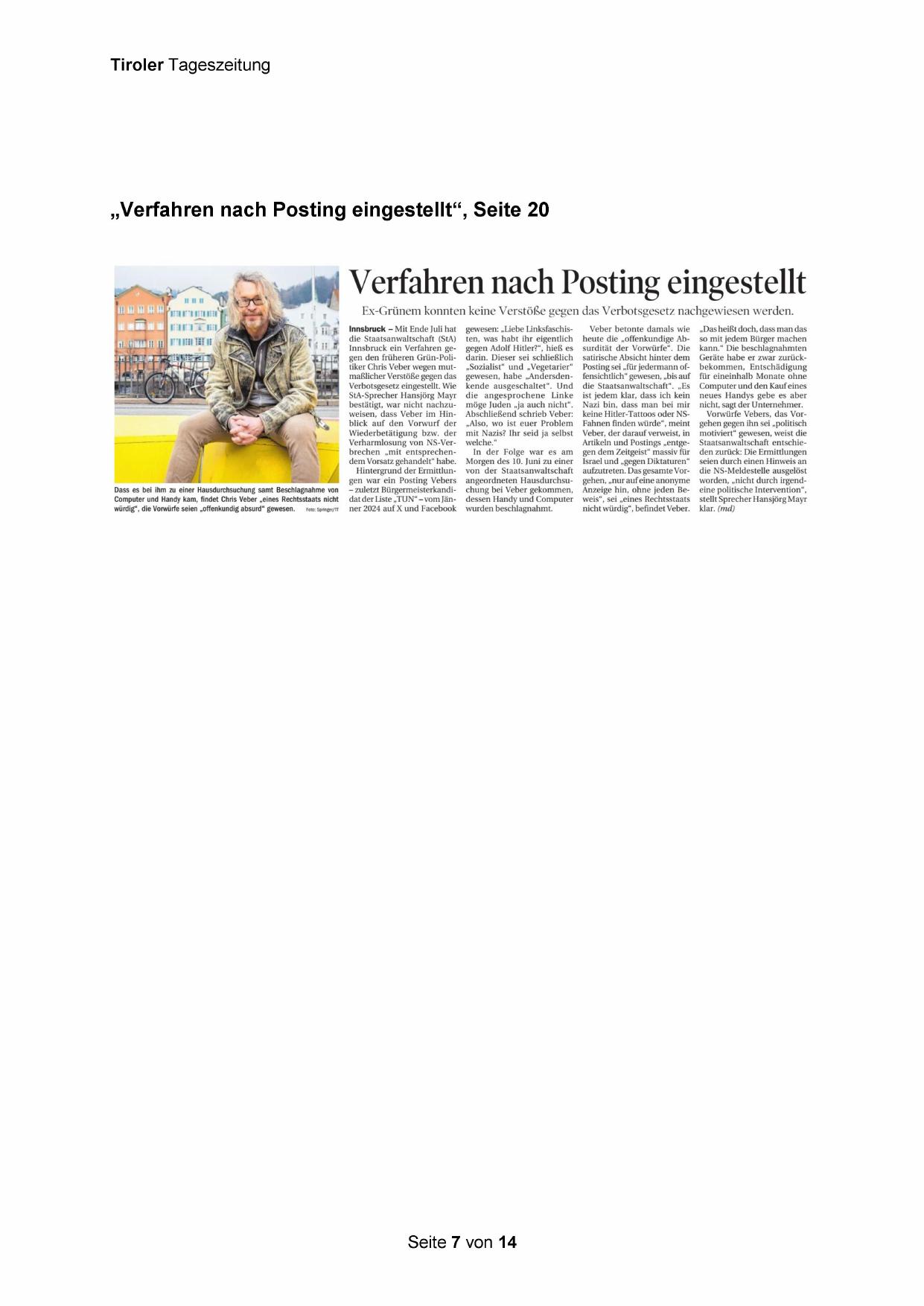 Dass es bei ihm zu einer Hausdurchsuchung samt Beschlagnahme von - zuletzt Bürgermeisterkandi- chung bei Veber gekommen, Anzeige hin, ohne jeden Be- eine politische Intervention“,